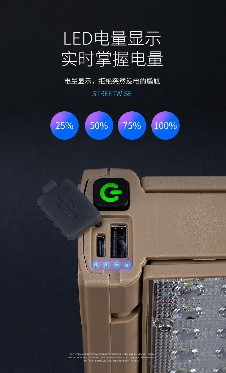 TYPE-C foldable solar 36 beads + headlight LED lighting hook