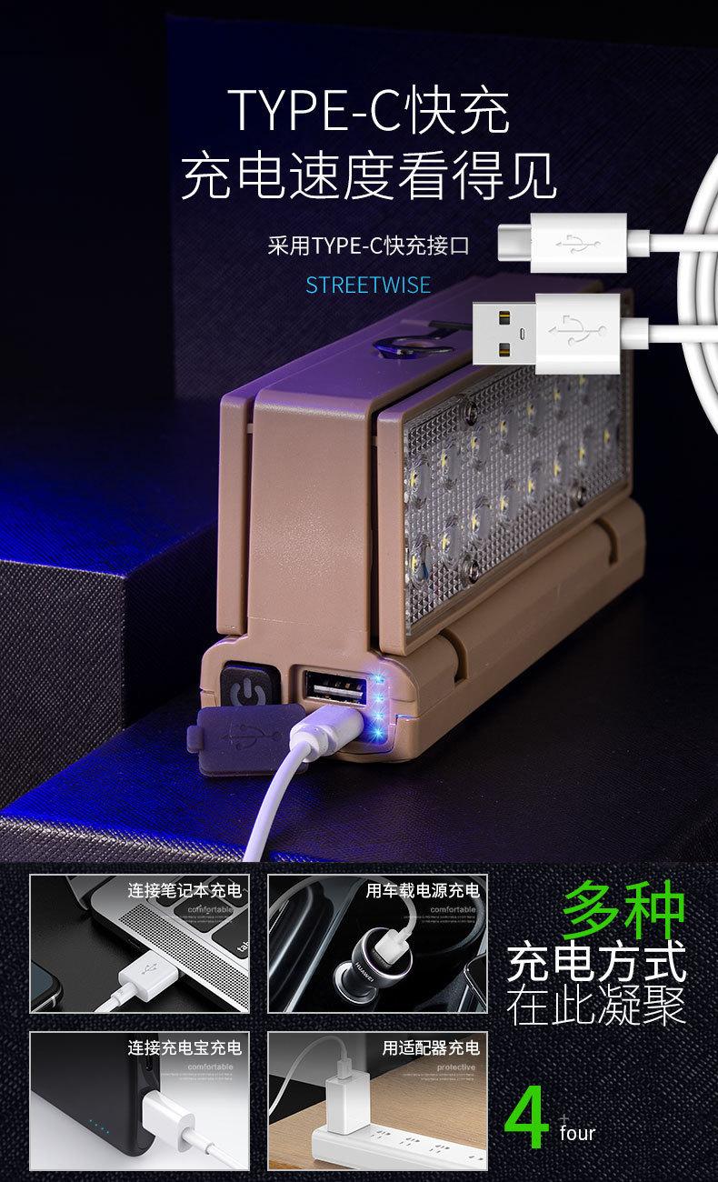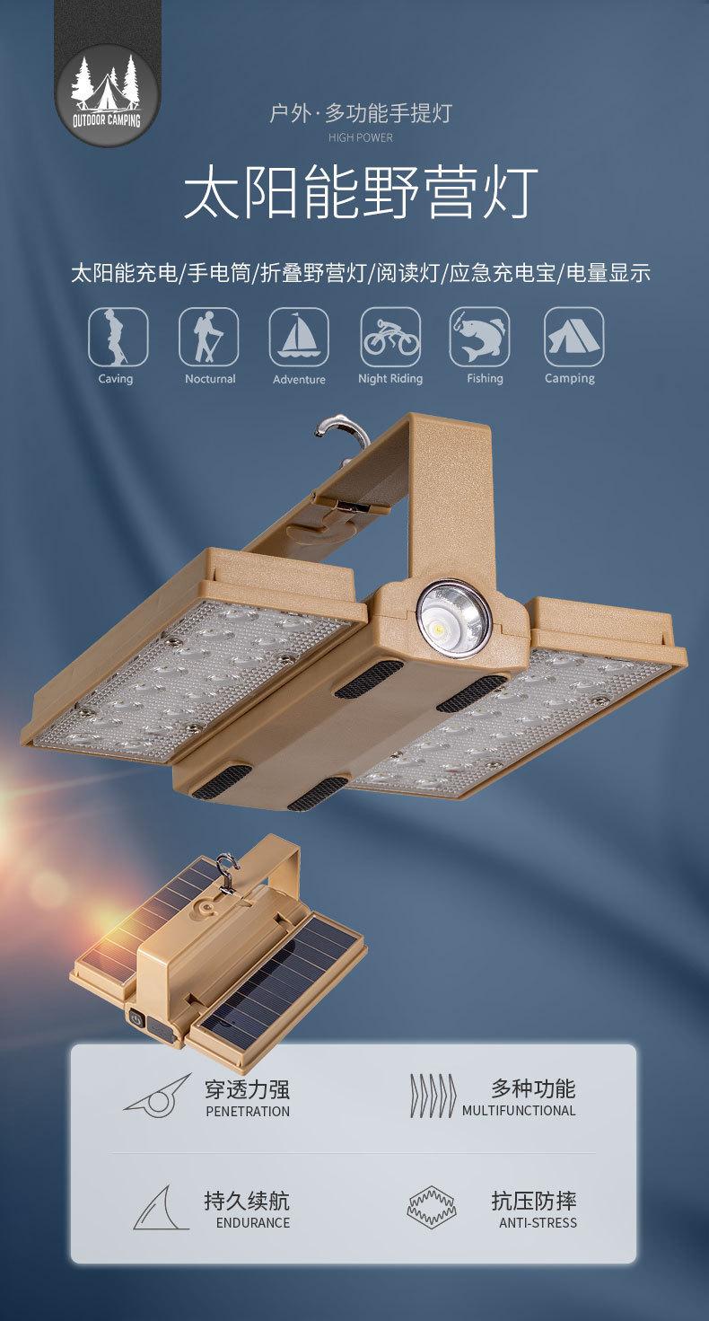 Iluminación de emergencia, luces de camping recargables, luces de camping portátiles transfronterizas para exteriores, luces laterales plegables con carga solar