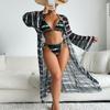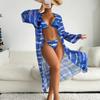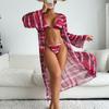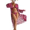 Traje de baño de comercio exterior europeo y americano 2024 para mujer, de dos piezas, de tres piezas, estampado de red roja, con mangas largas, bikini tipo axila