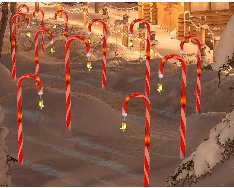 Una de cada Doce Luces de Bastón de Estrella Solar LED Caramelo Decoración Navideña Guirnalda de Luces Patio Jardín Decoración Exterior