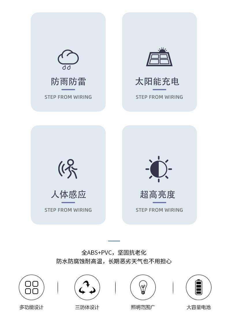 Luz solar cuadrada de seis rejillas 180-6: Tamaño del producto: 310*100*40mm (tamaño desplegado), peso neto: 194g