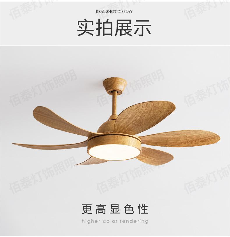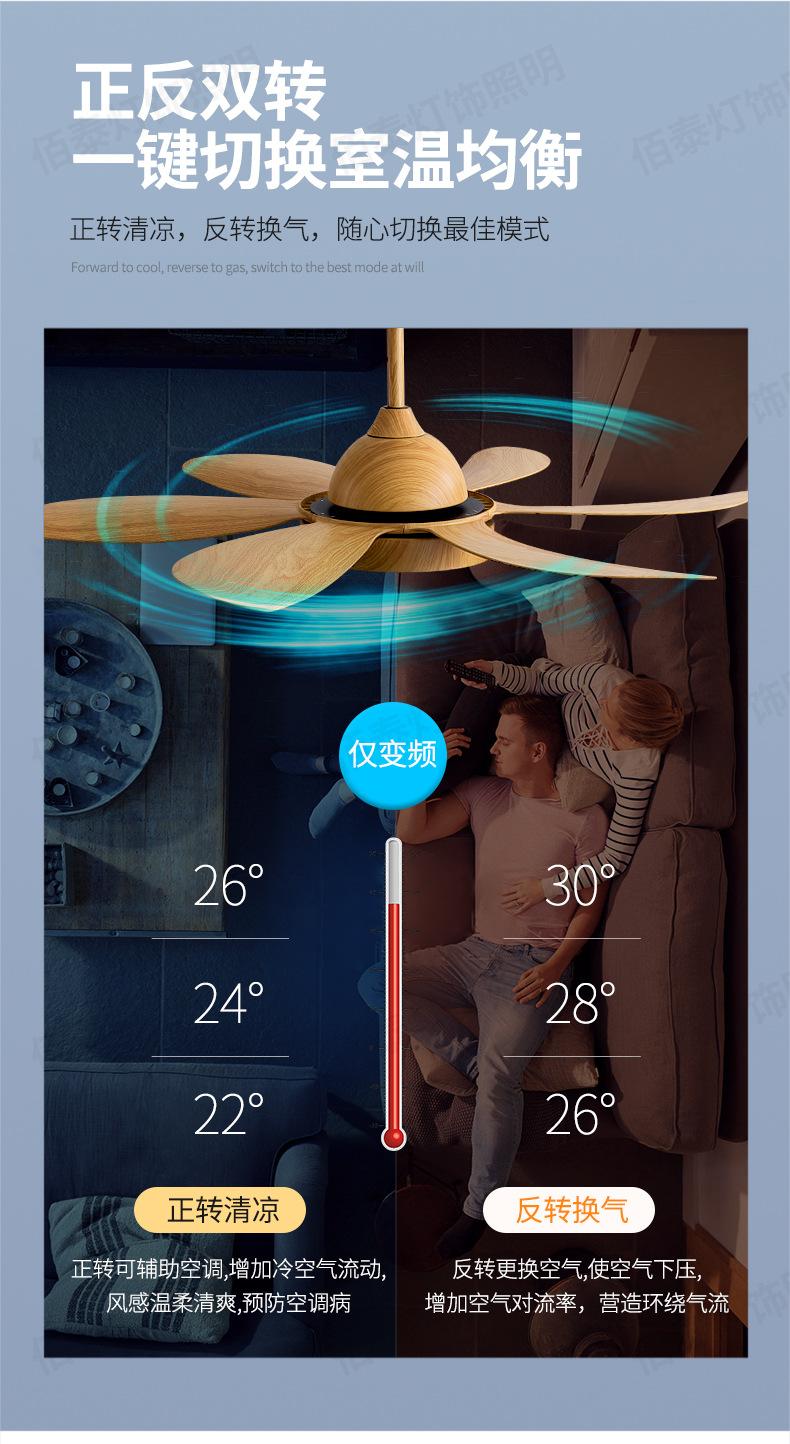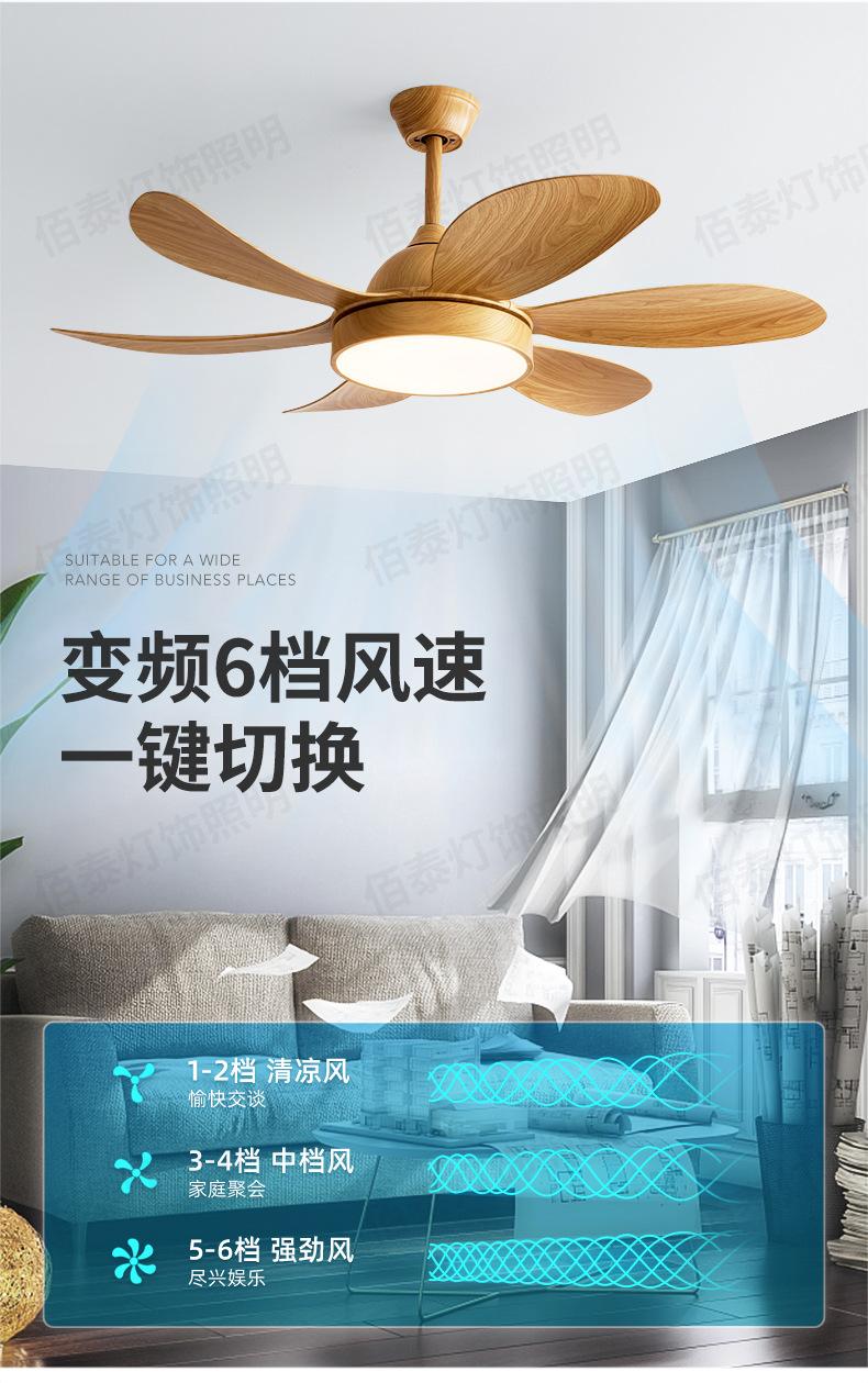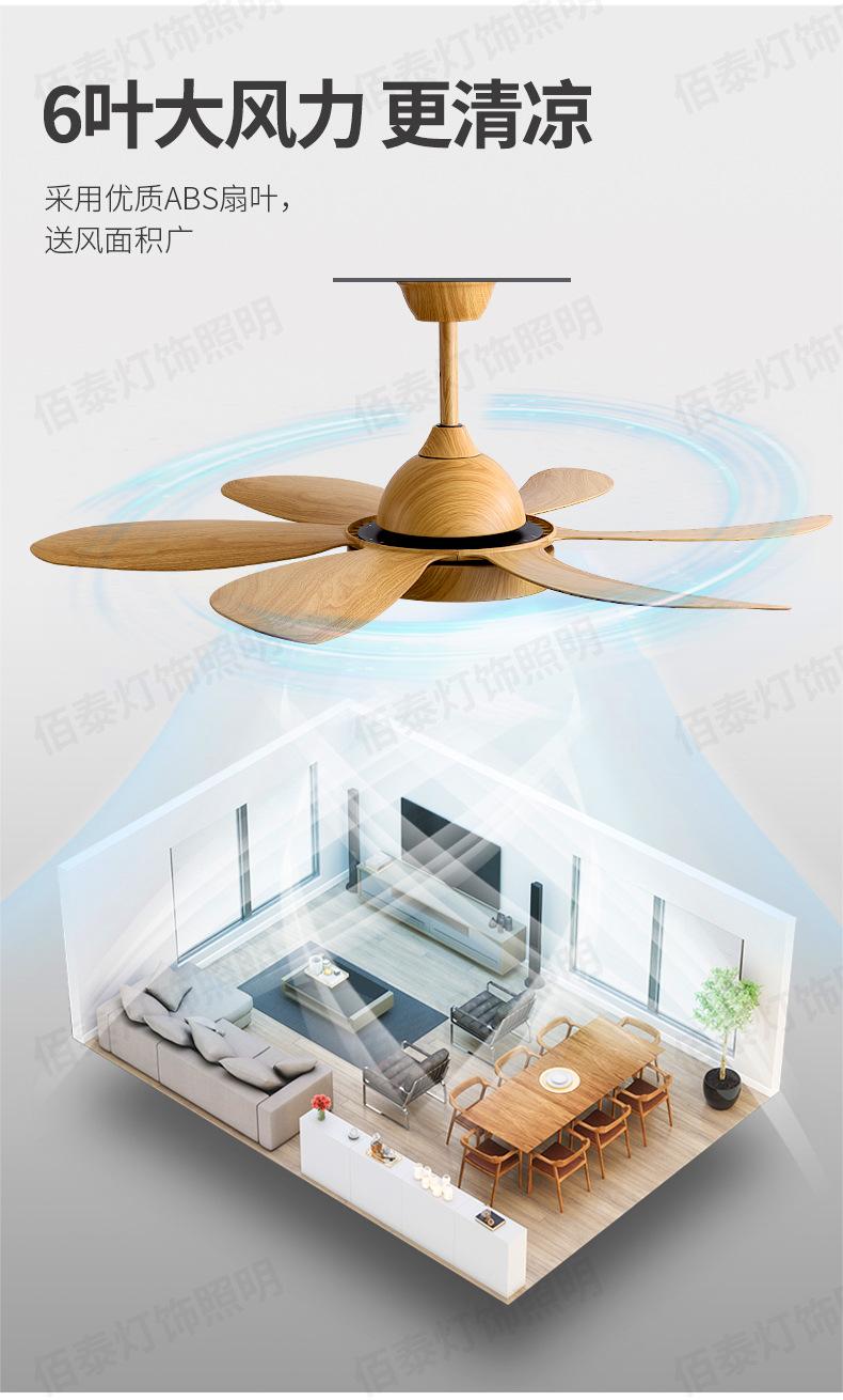 Lámpara ventilador de viento grande lámpara ventilador de techo color madera transferencia de agua conversión de frecuencia silencioso 6 aspas sala de estar comedor ventilador de techo Nuevo