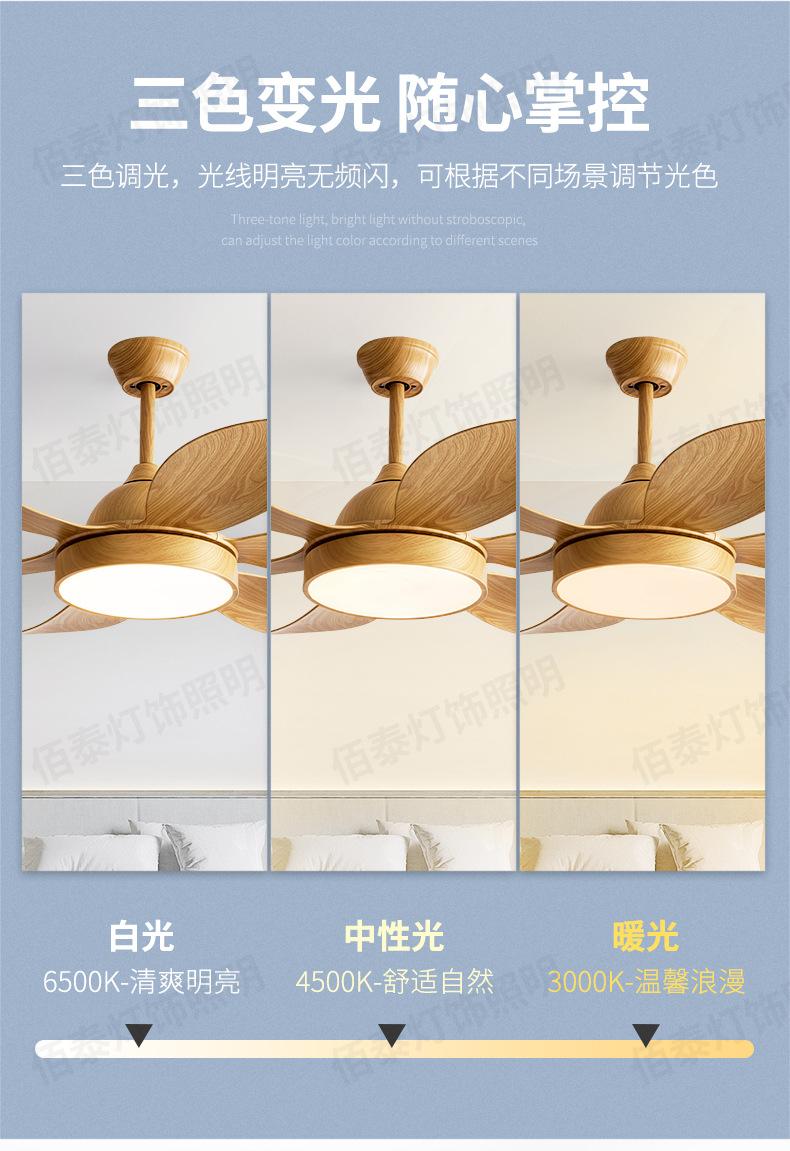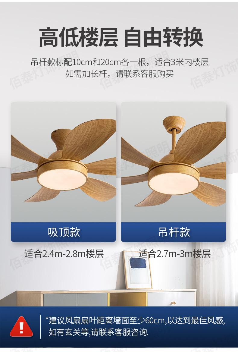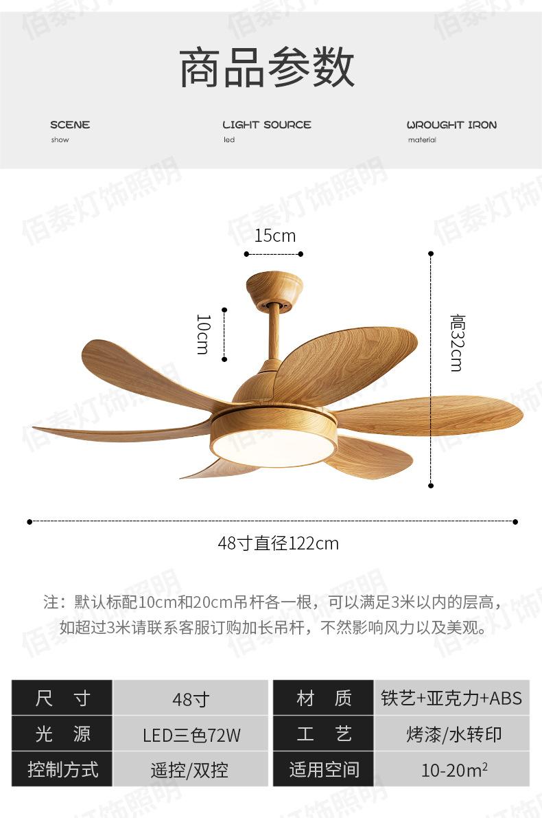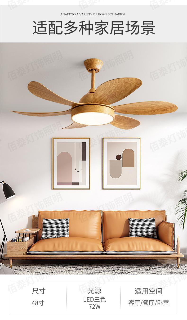 Lámpara ventilador de viento grande lámpara ventilador de techo color madera transferencia de agua conversión de frecuencia silencioso 6 aspas sala de estar comedor ventilador de techo Nuevo