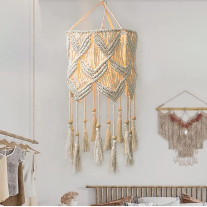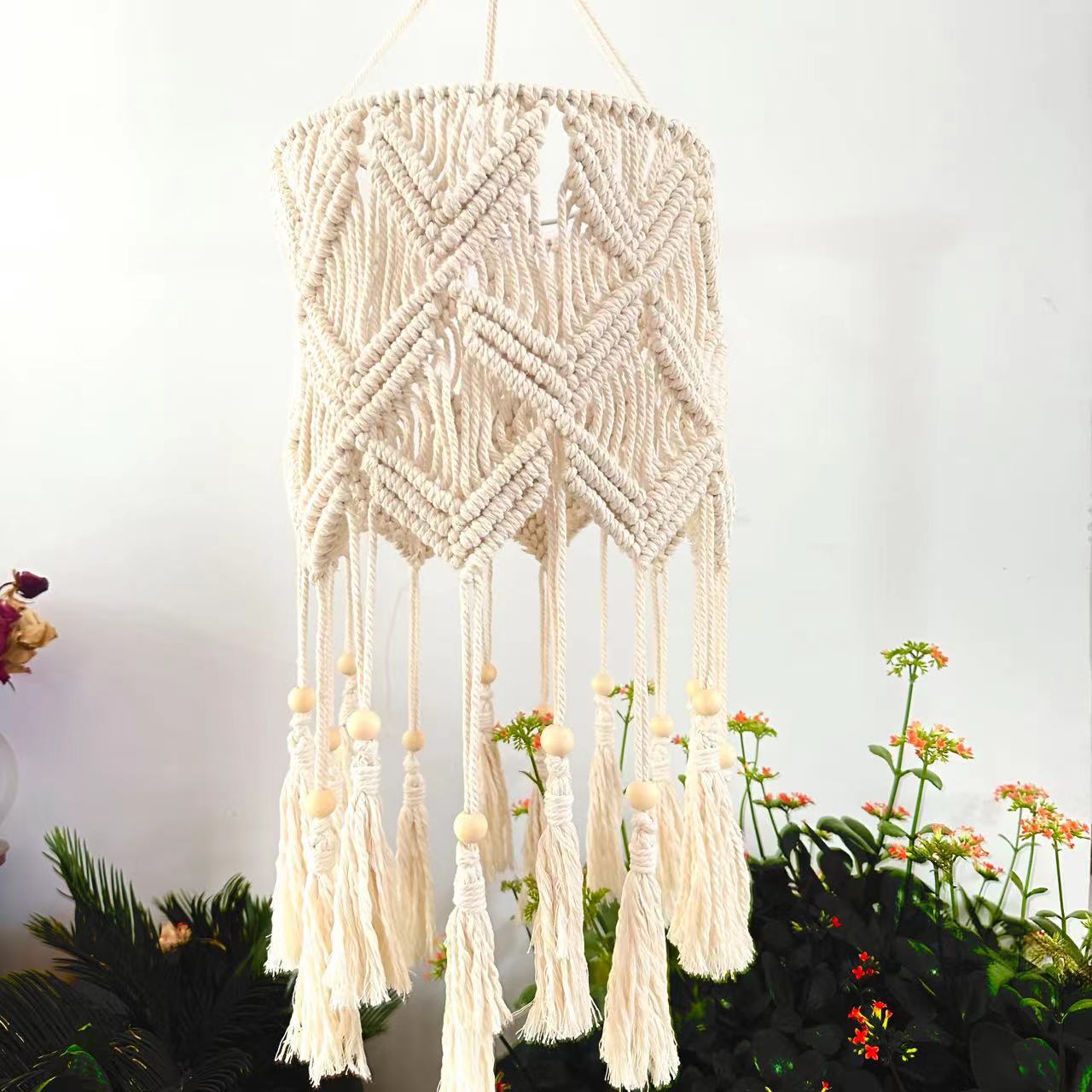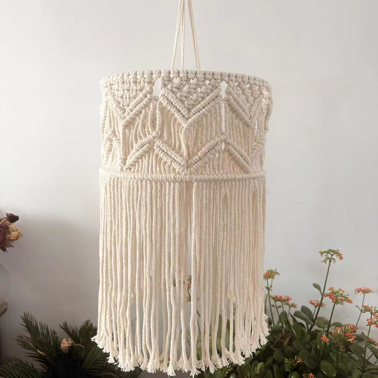 Candelabro Tejido a Mano Transfronterizo Lámpara de Mesa Pantalla Hogar Casa de Familia Cuerda de Algodón Techo Borla Larga Cubierta de Candelabro para Dormitorio