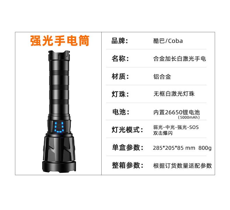 Linterna transfronteriza nueva de luz fuerte de largo alcance superbrillante láser blanco aleación de aluminio linterna multifunción TikTok corriendo por el cielo