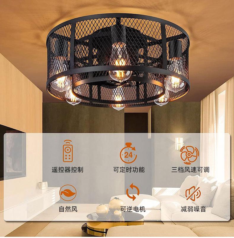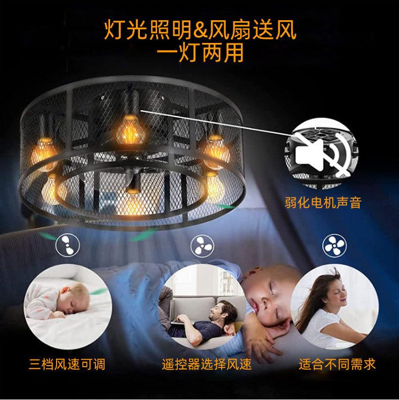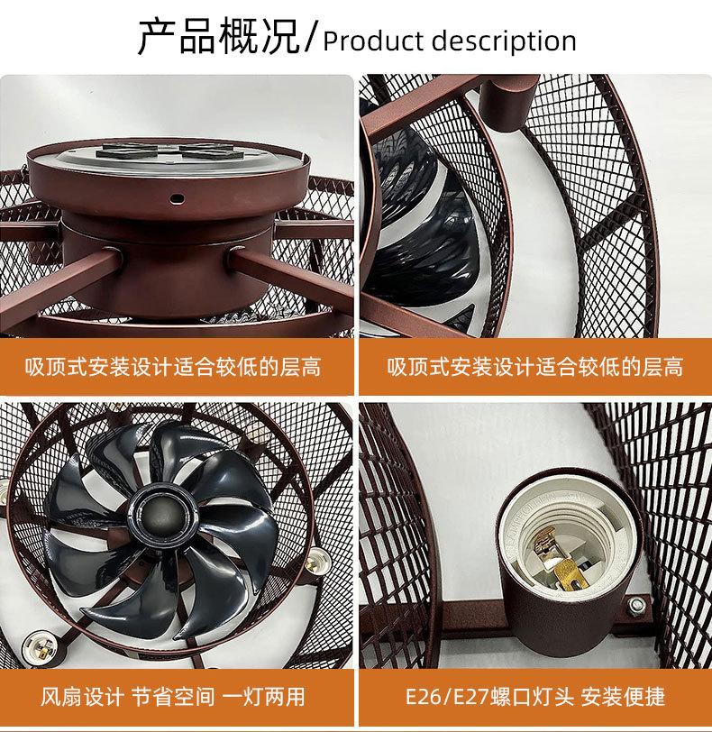 Lámpara de ventilador de techo industrial retro americano con conversión de frecuencia silenciosa y control remoto para sala de estar, dormitorio, estudio, comedor