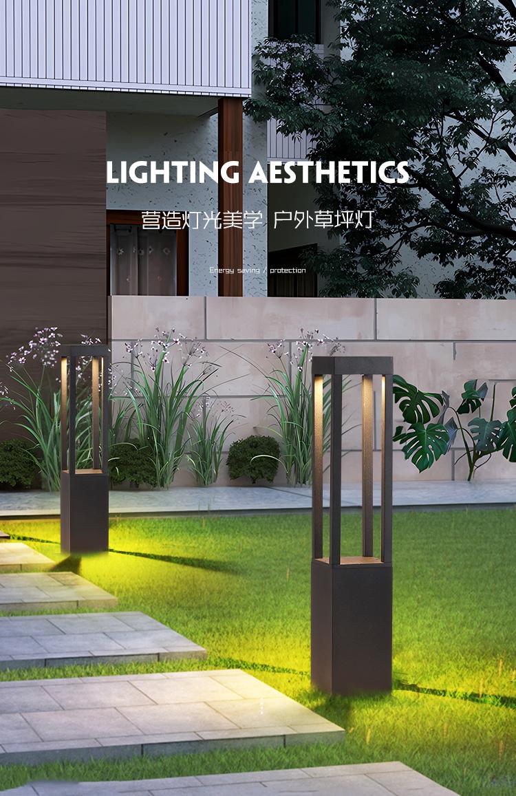 Lámpara de Césped de Patio Pasillo de Villa Jardín Aluminio Cuadrada Exterior Enchufe Led Césped Patio Lámpara Decorativa