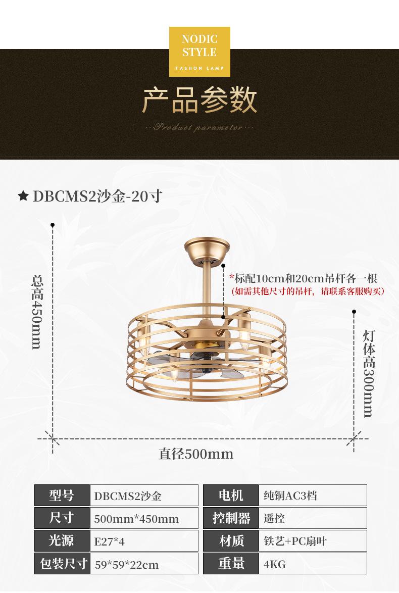 Luces de ventilador creativas y populares transfronterizas de Amazon, nuevas luces de ventilador de techo para sala de estar, restaurante, cafetería, control remoto, estilo americano simple
