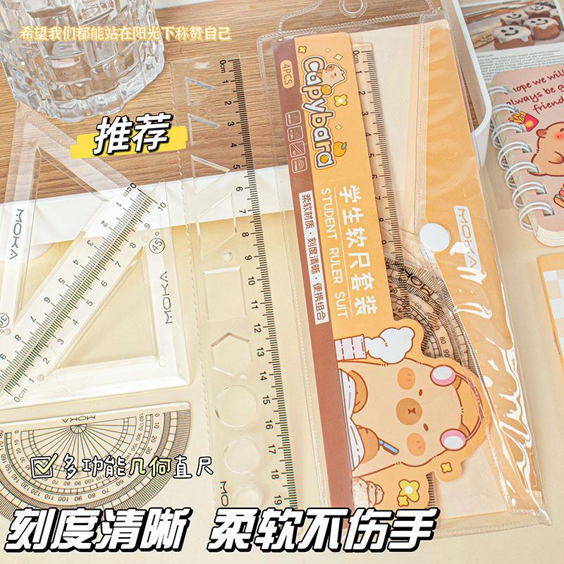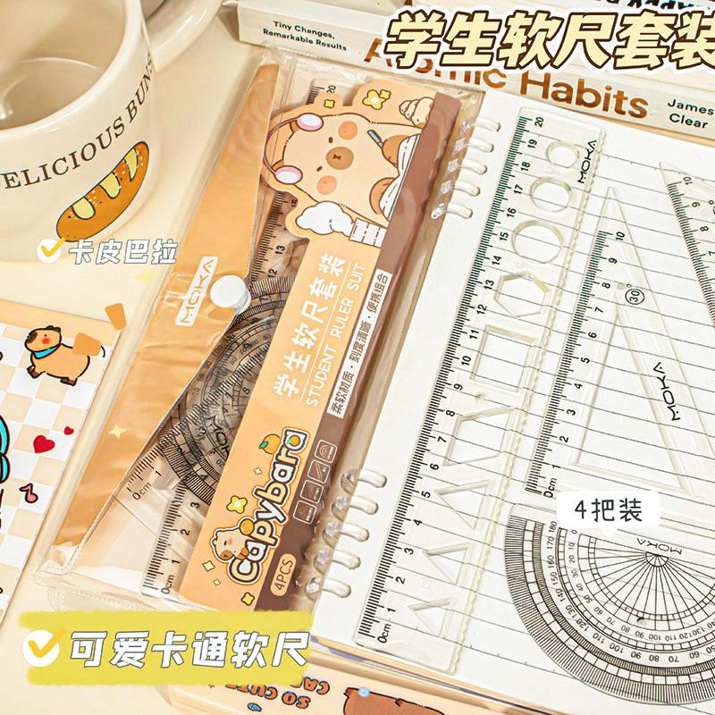 Compra Juego de reglas de dibujos animados de cuatro piezas para estudiantes de escuela primaria, regla suave de 20 cm, transportador, suministros de aprendizaje multifuncionales, papelería al por mayor al por mayor en Joom.pro