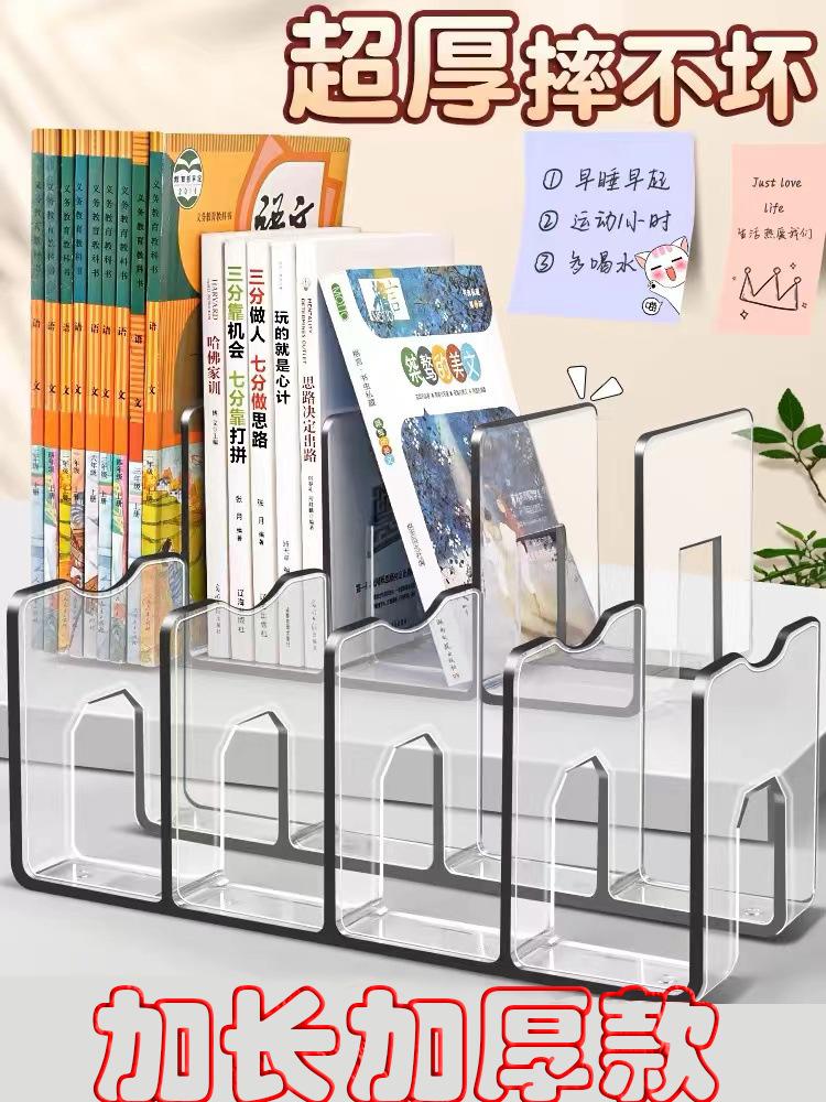 Soporte para libros de material acrílico Morandi transparente, estante de almacenamiento de escritorio para libros de estudiantes, estantería de papelería de oficina, venta al por mayor