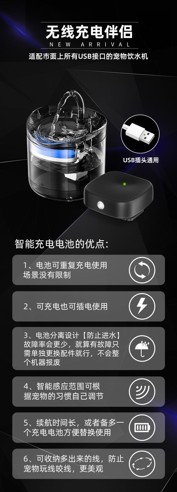 Dispensador de agua automático para gatos compañero de carga Banco de energía inteligente inalámbrico Flujo de agua circulante bebedero para mascotas batería recargable