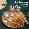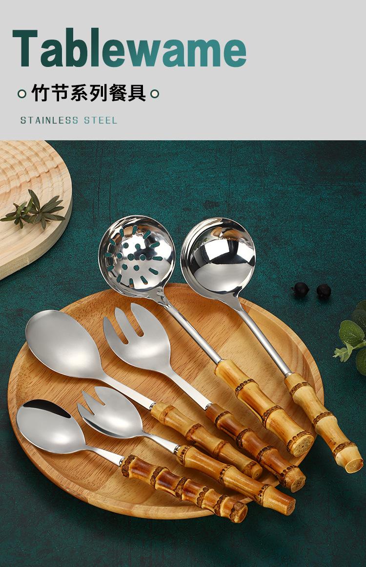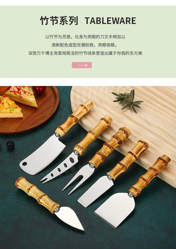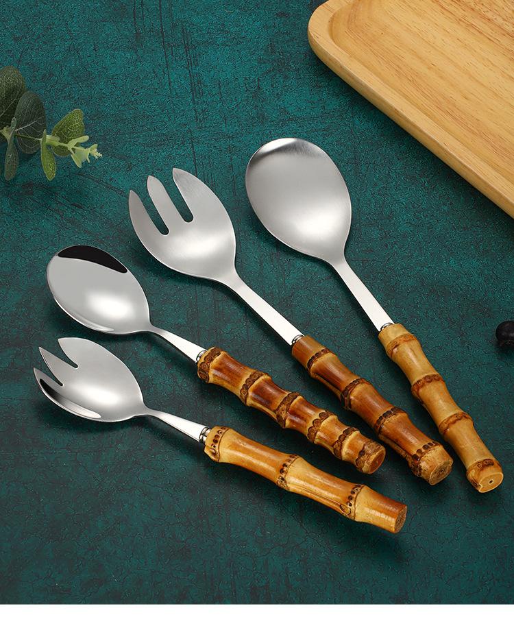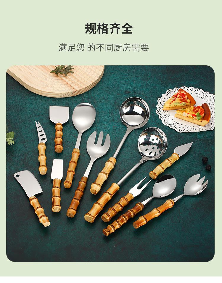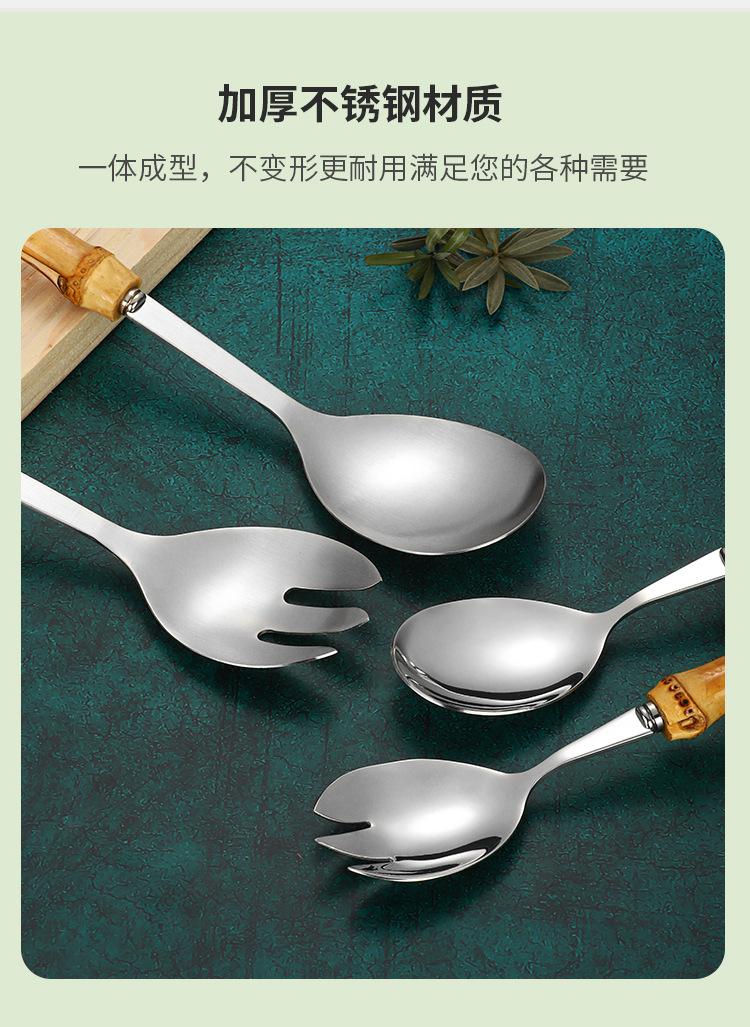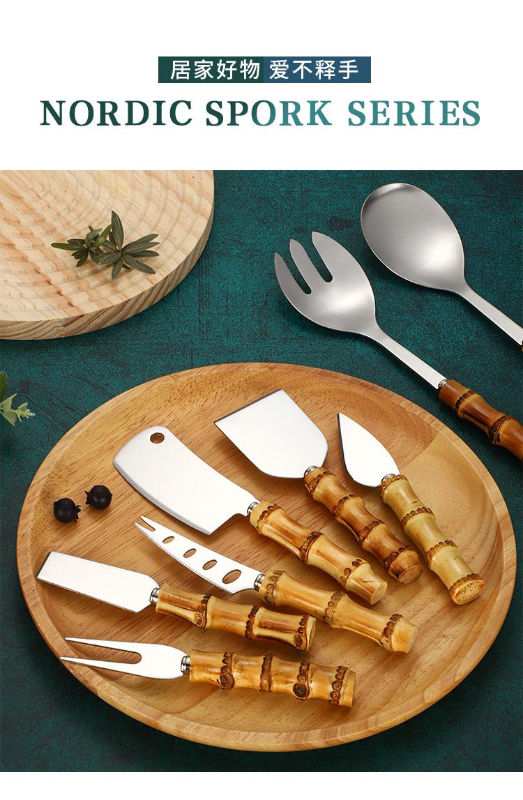 Compra Juego de herramientas para hornear de acero inoxidable con mango de bambú natural transfronterizo, cuchara para ensalada, tenedor, tenedor para queso, pala para queso, cuchillo para mantequilla al por mayor en Joom.pro
