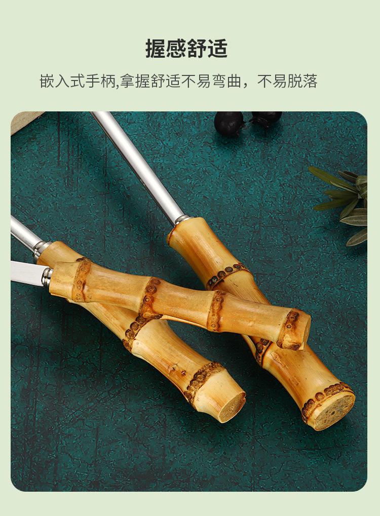 Juego de herramientas para hornear de acero inoxidable con mango de bambú natural transfronterizo, cuchara para ensalada, tenedor, tenedor para queso, pala para queso, cuchillo para mantequilla
