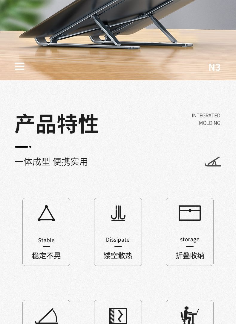 Soporte de Escritorio Plegable Elevable de Aleación de Aluminio para Laptop Universal Portátil Almacenamiento Ajustable Soporte de Aleación para Laptop