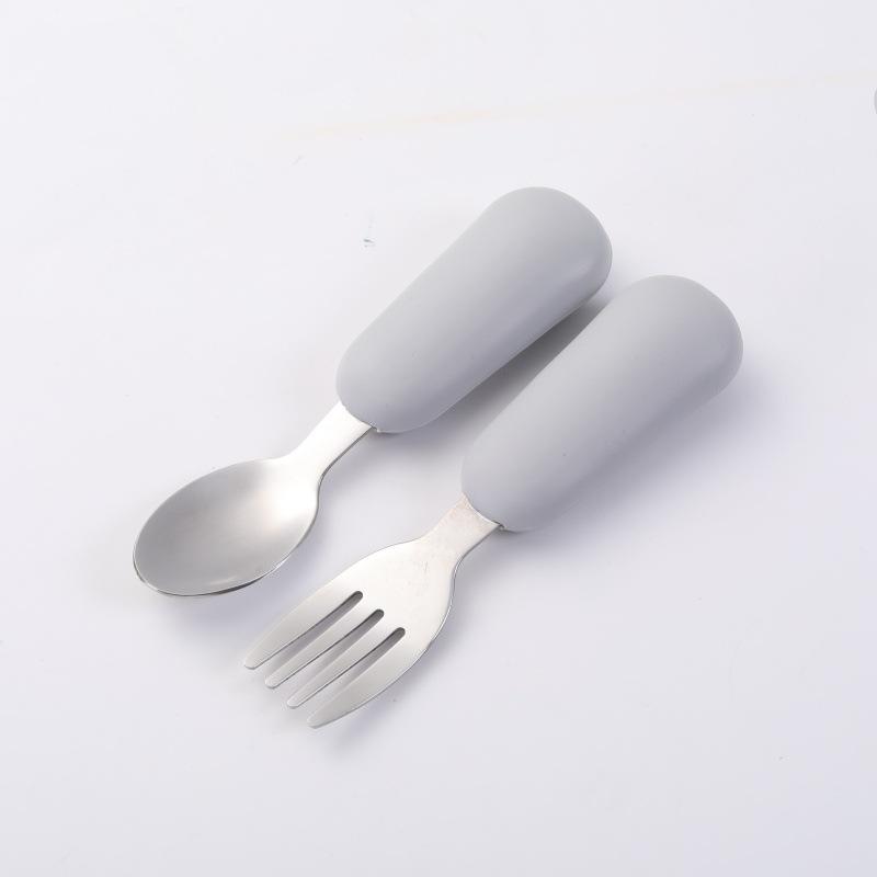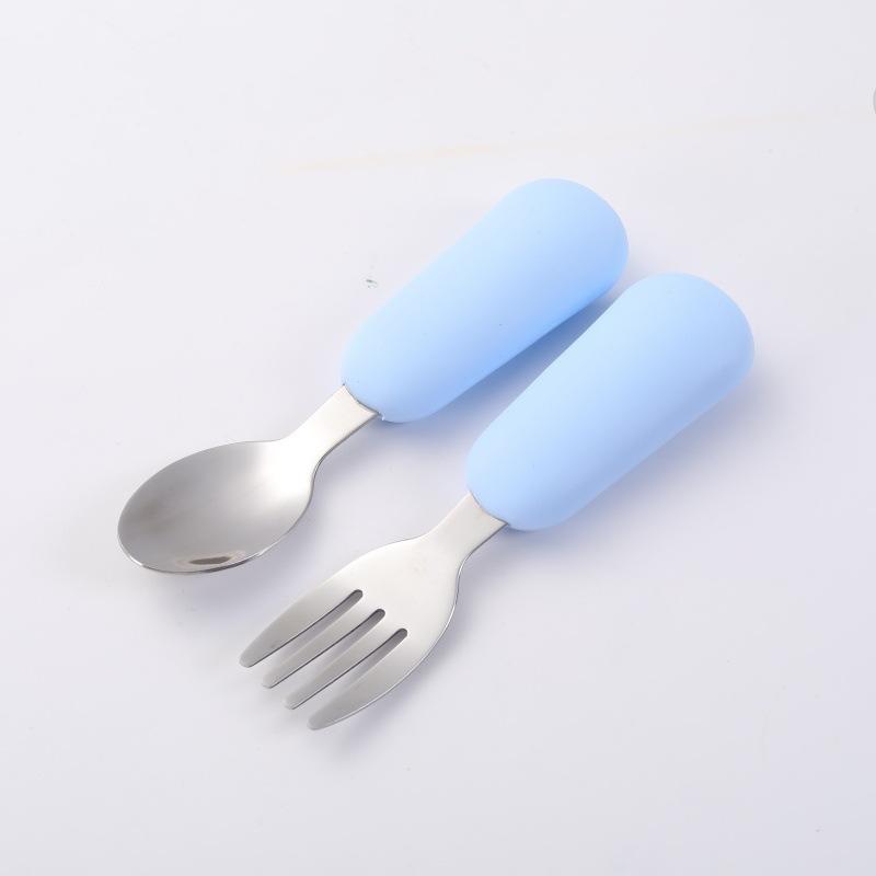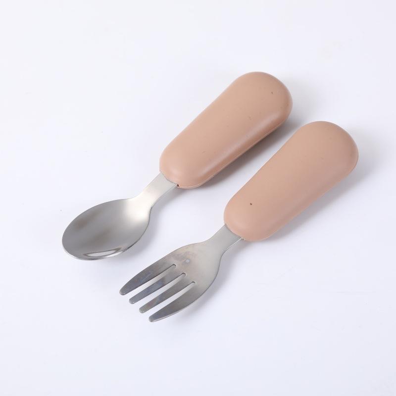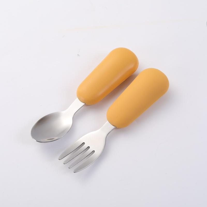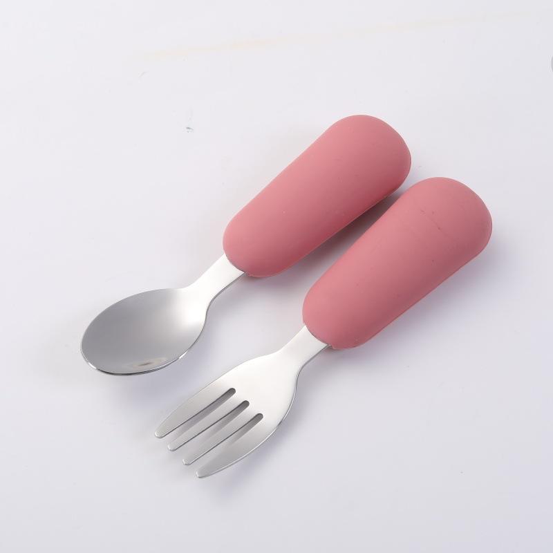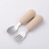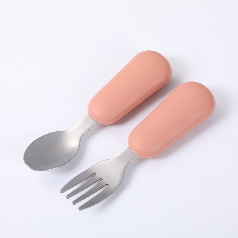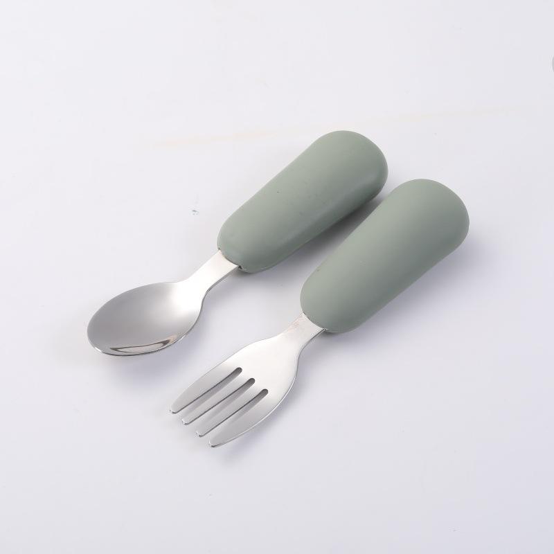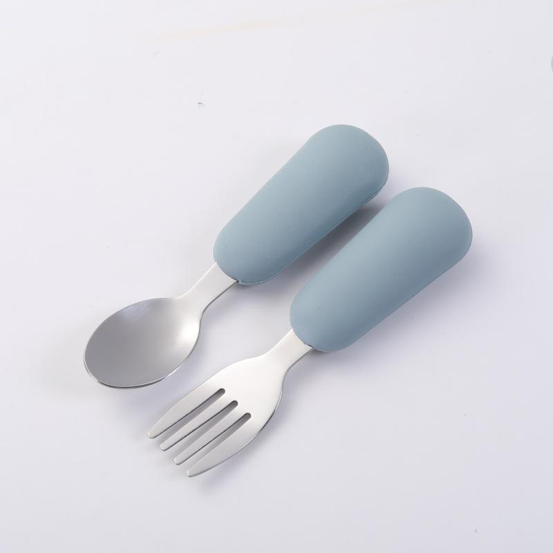 Juego de Tenedor y Cuchara para Niños Tenedor y Cuchara para Bebé Mango Corto Acero Inoxidable Silicona Tenedor y Cuchara Suplemento Alimenticio para Bebé Tenedor Cuchara