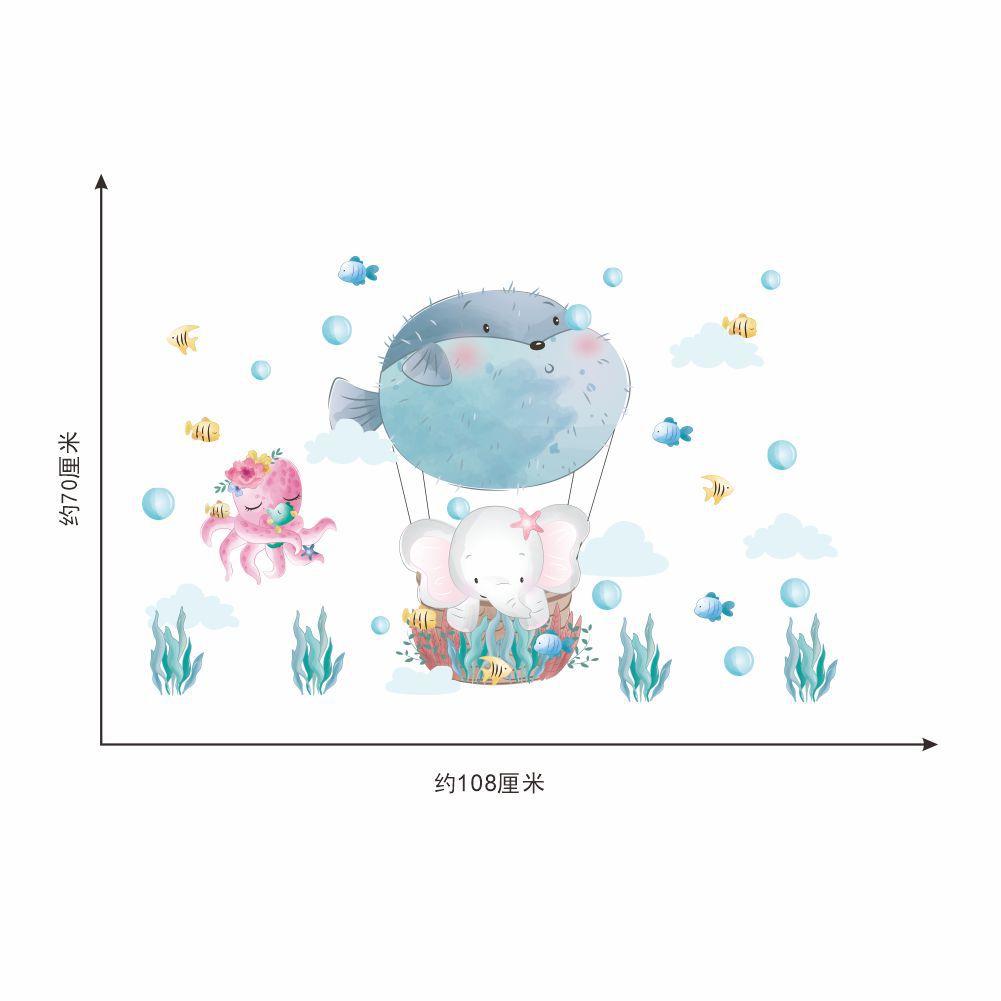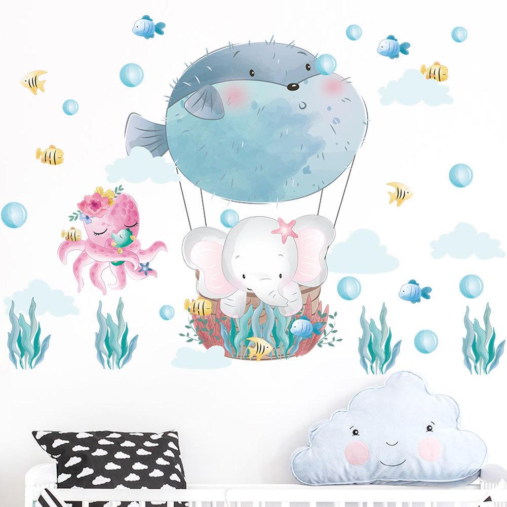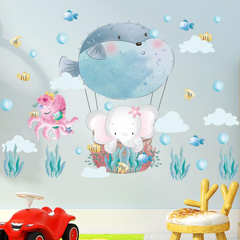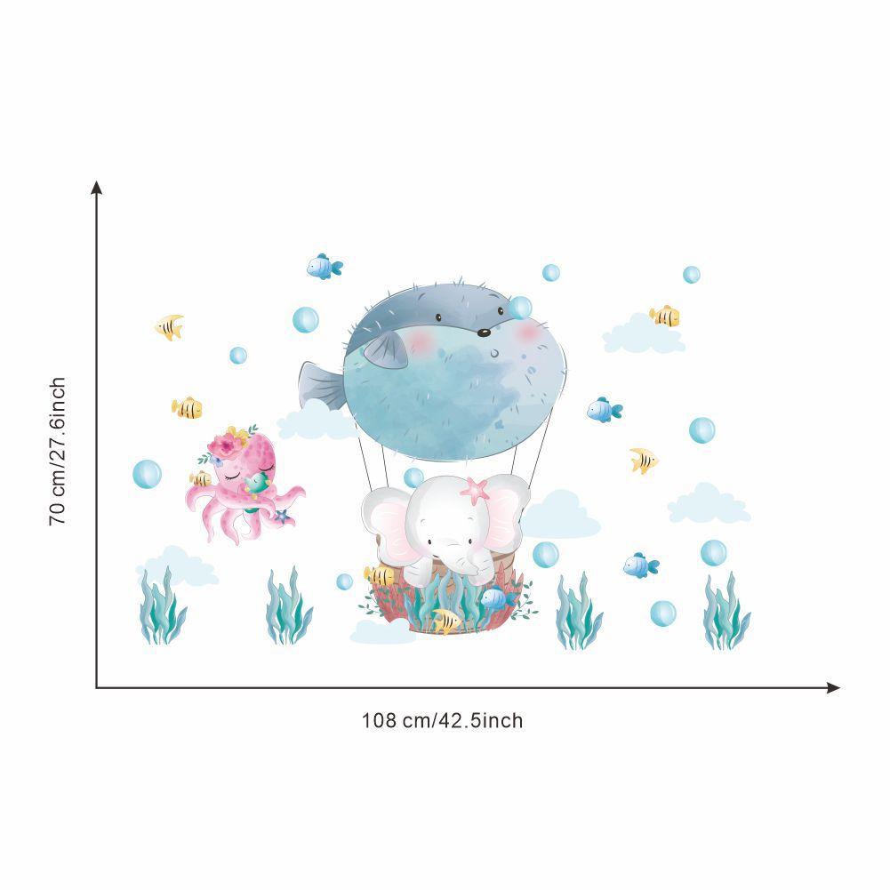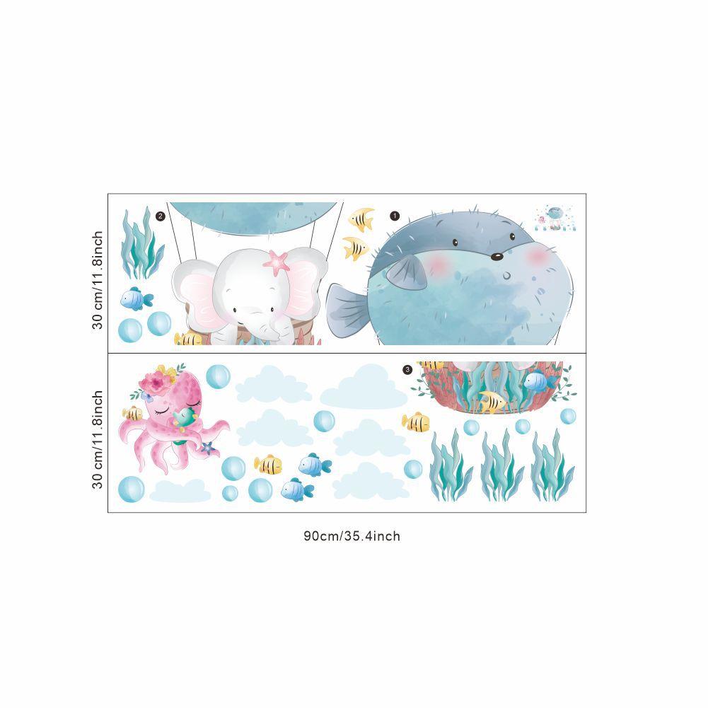 Pegatinas de pared de dibujos animados de biología marina para habitación infantil, decoración de pared de baño, pegatinas autoadhesivas impermeables