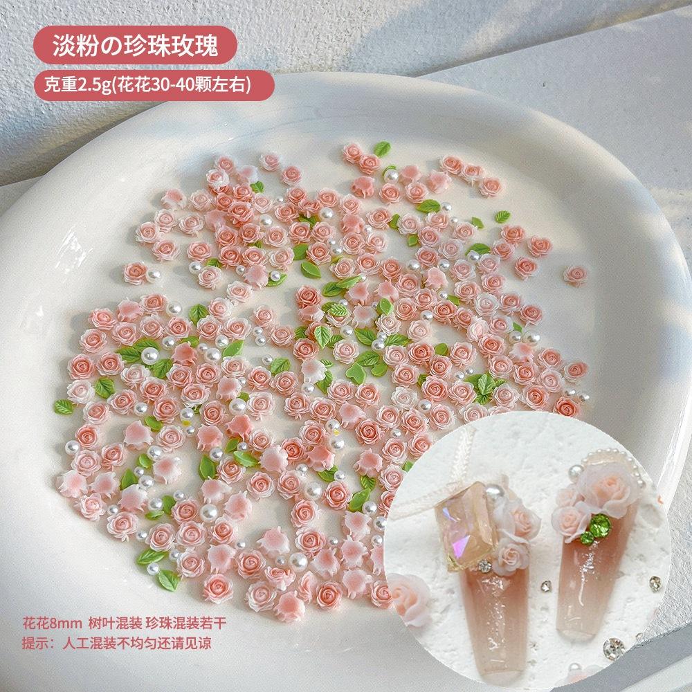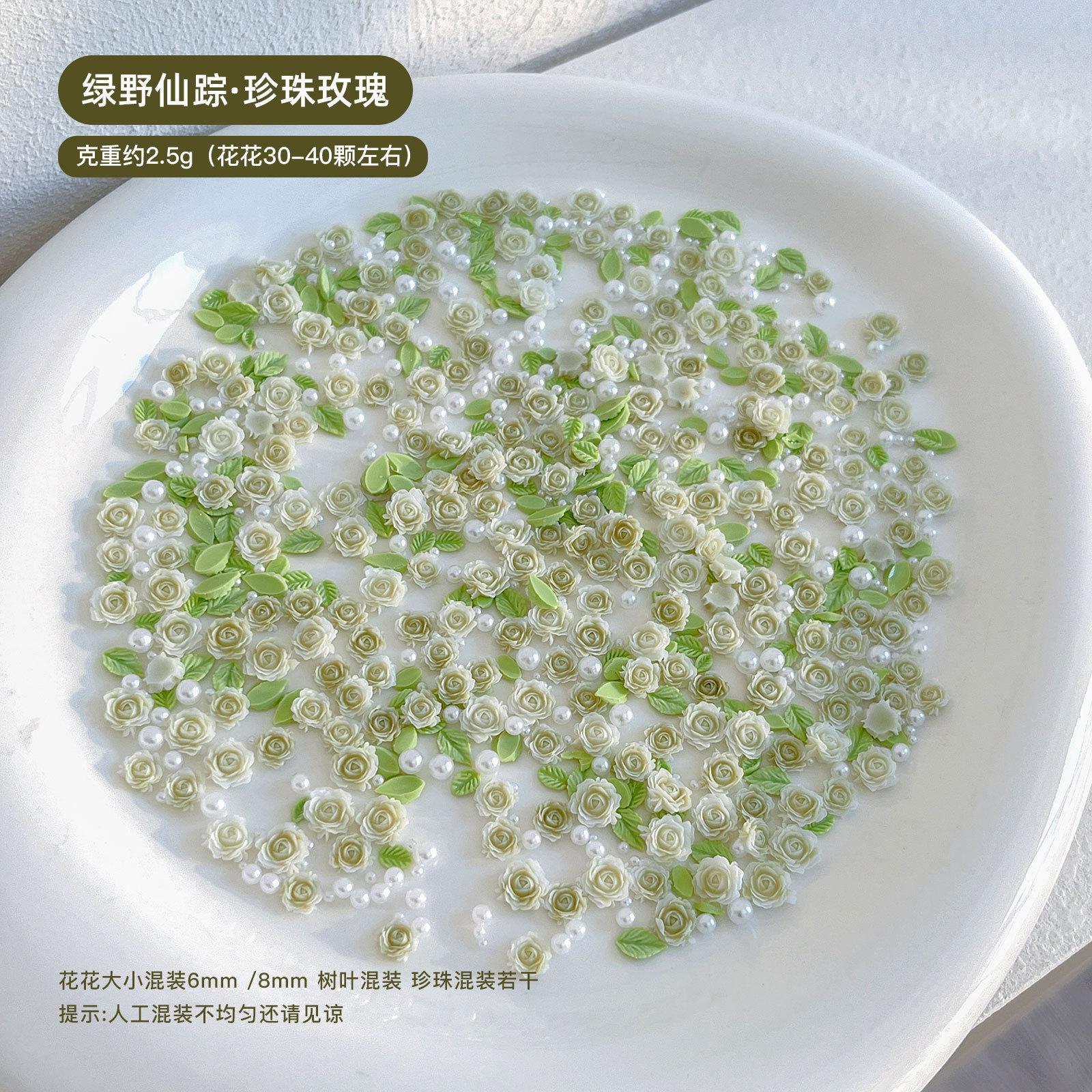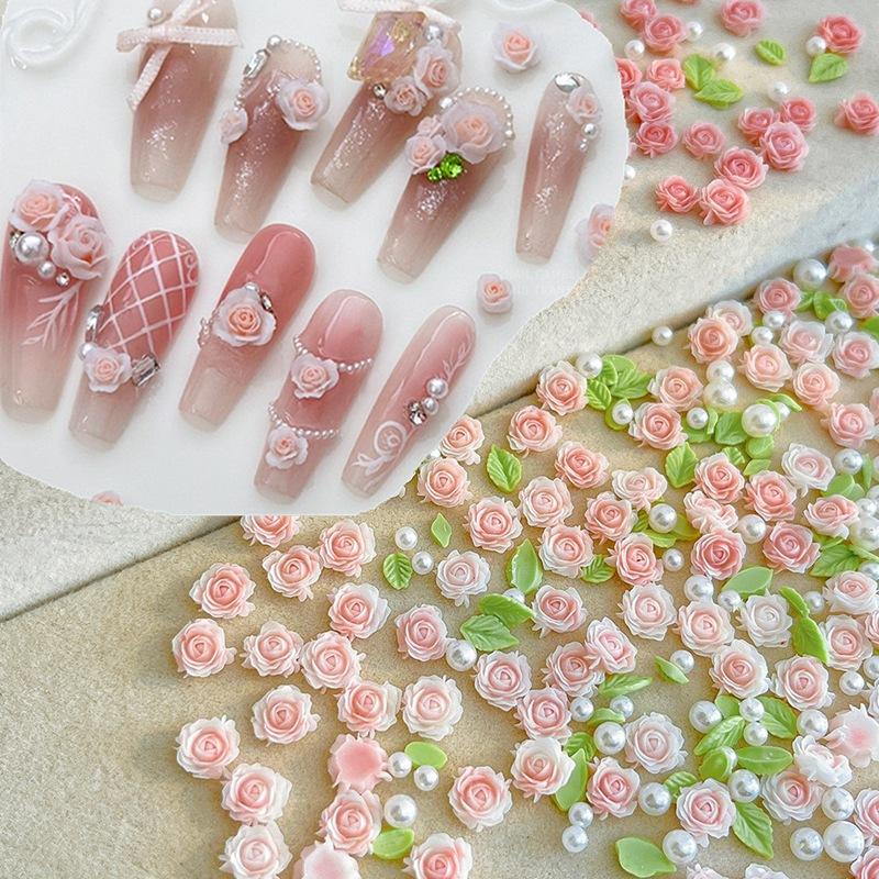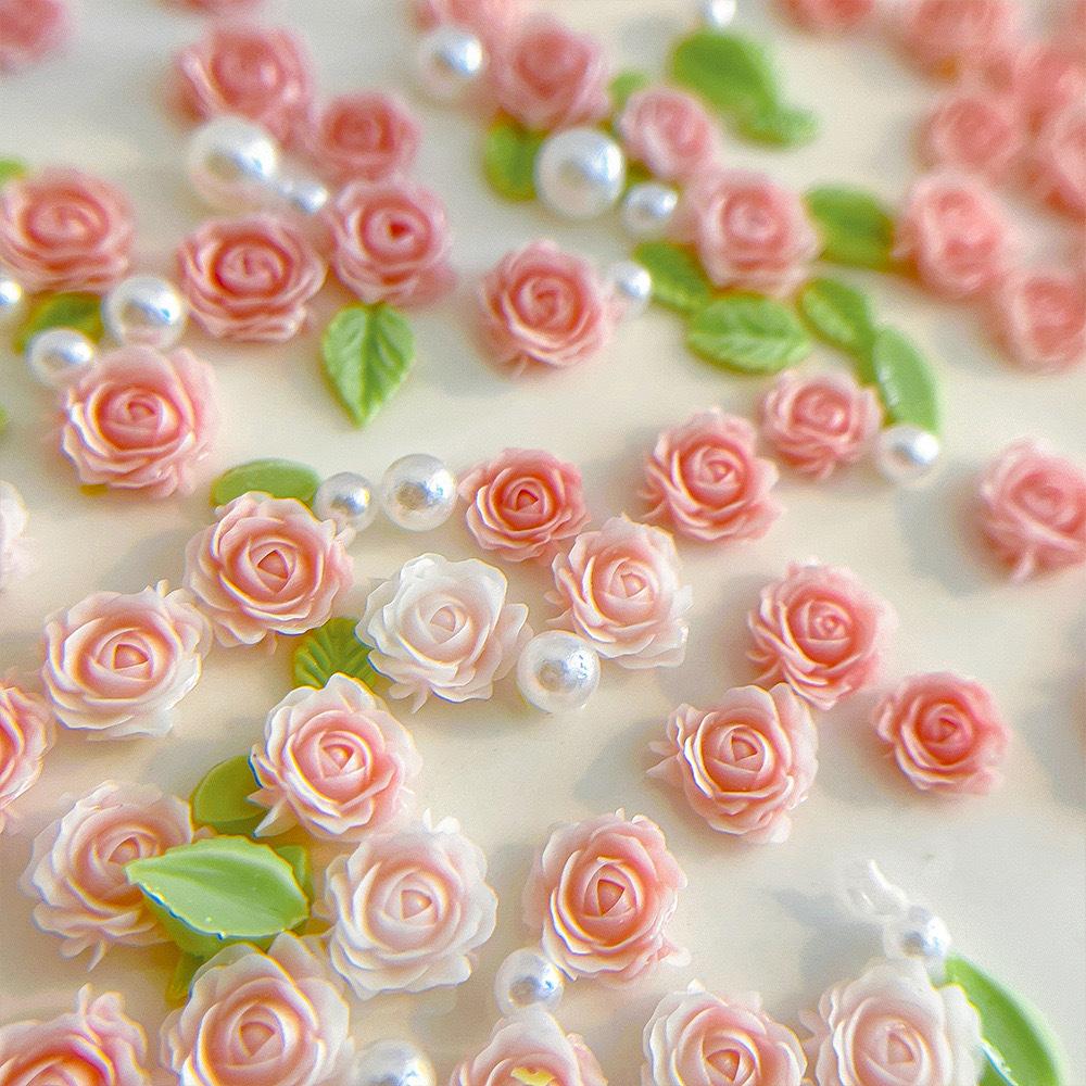 Rosa Camelia Hojas Verdes Arte de Uñas Joyería Flor Tridimensional Resina Tamaño Grande Pequeño Perla Uña Mixta