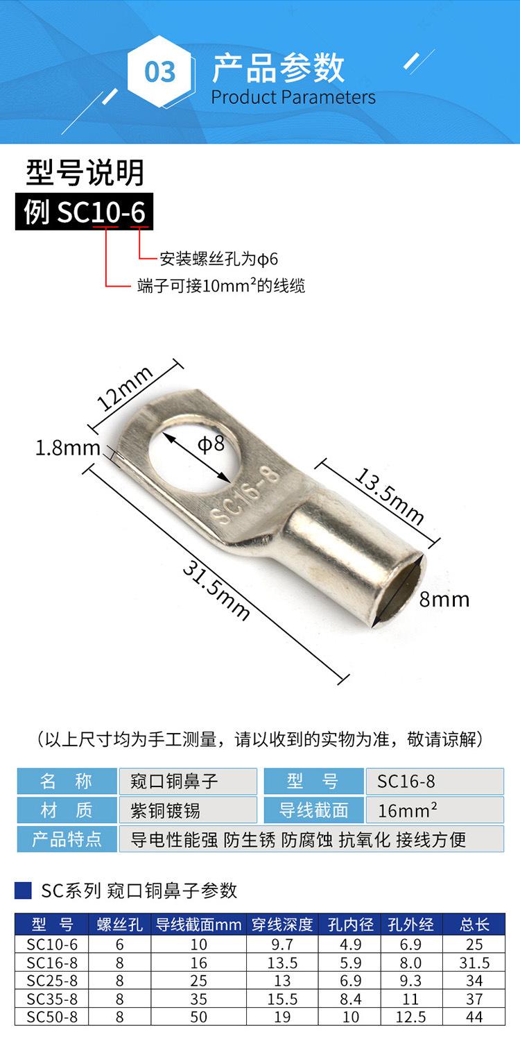 Suministro de fábrica SC10-6 punta de cobre peep terminal de cobre oreja de cobre punta plateada terminal al por mayor