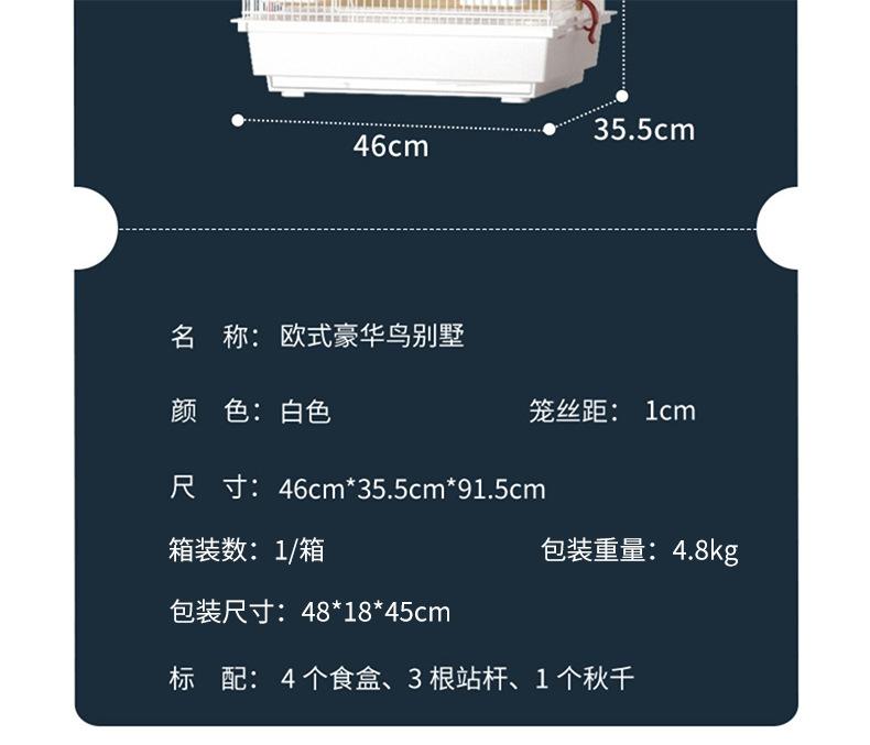 White-bold and high European birdcage (Basic 5-piece set), White-Bold and Heighten European Birdcage (Advanced...