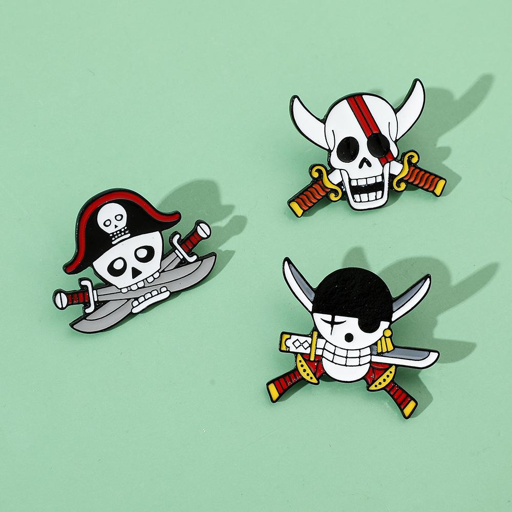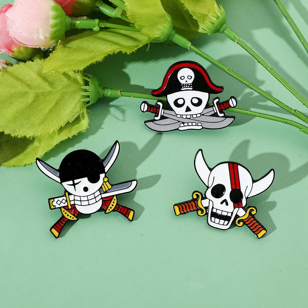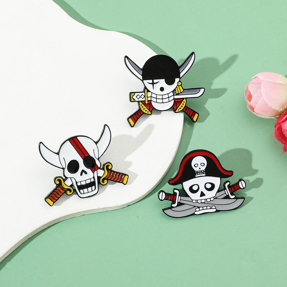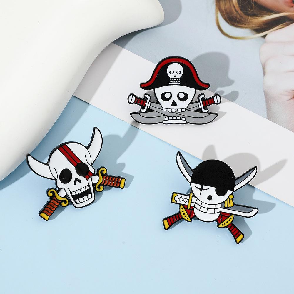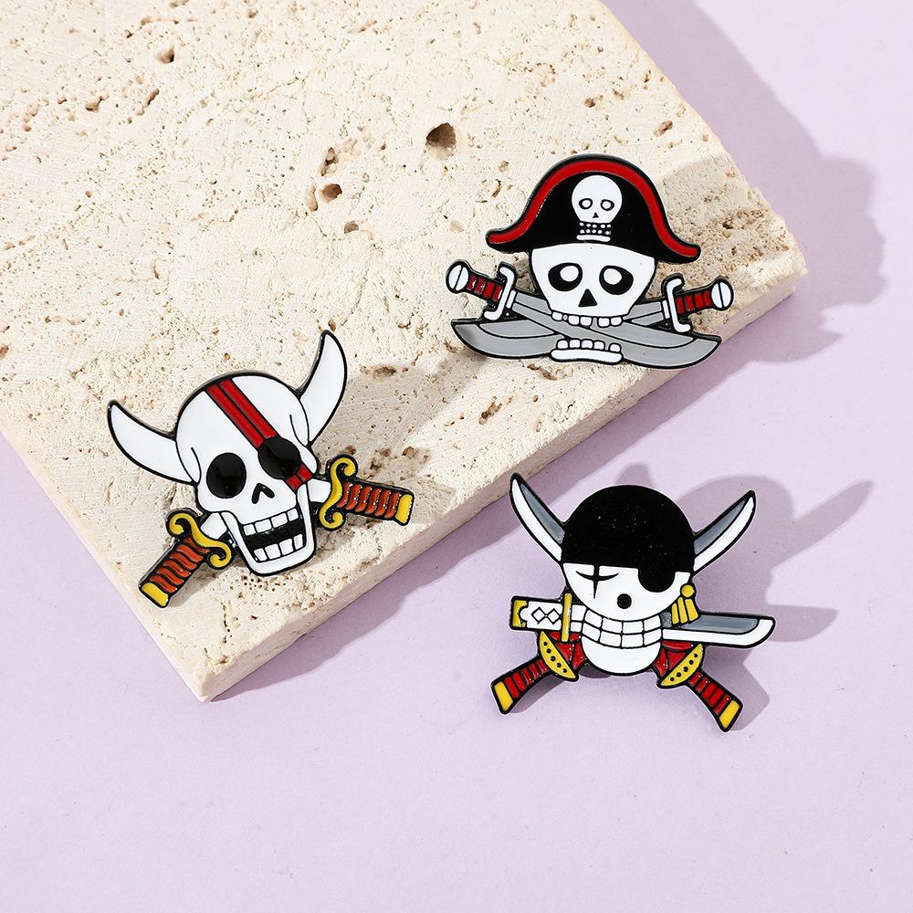 Insignia de metal de una pieza con dibujos animados de animación creativa personalizada, accesorios, broche de aleación de calavera con gota de aceite, decoración