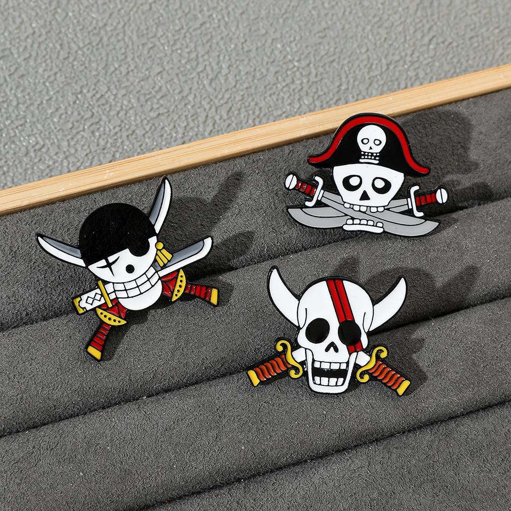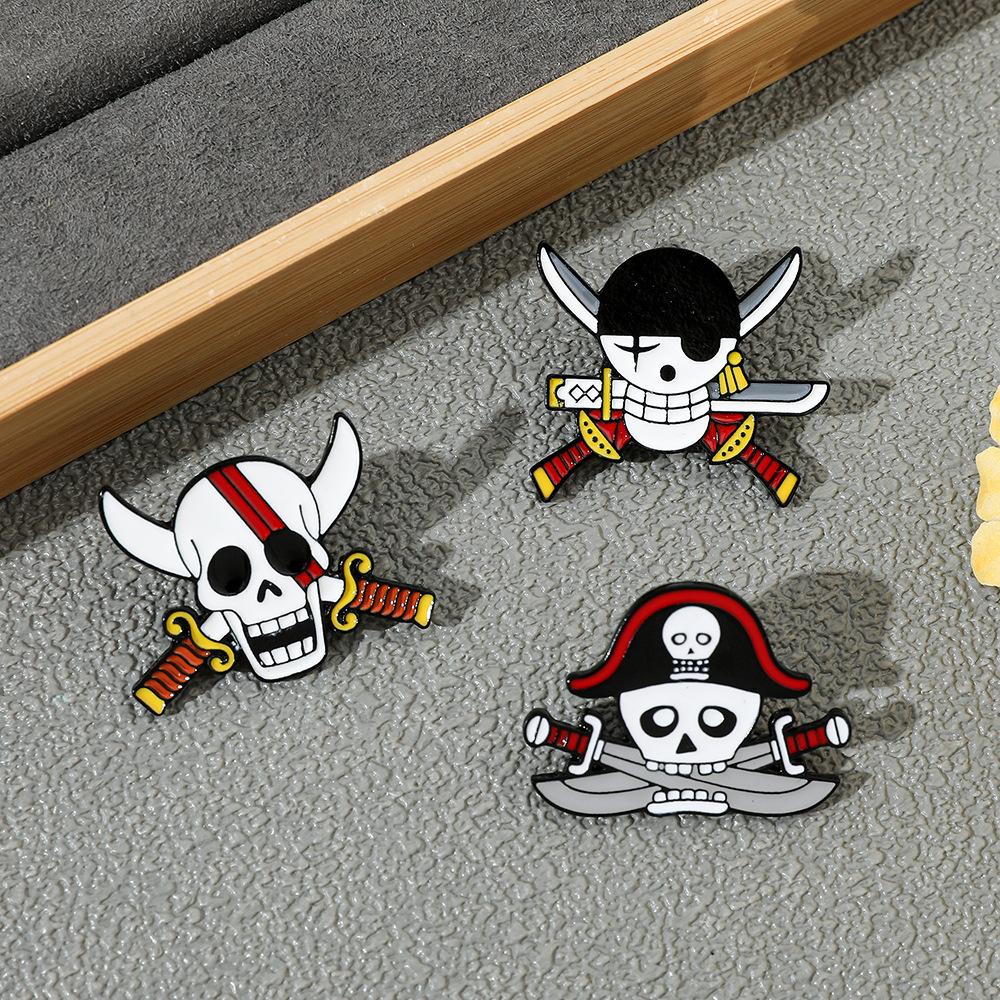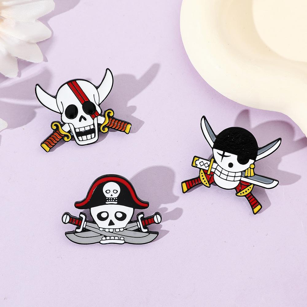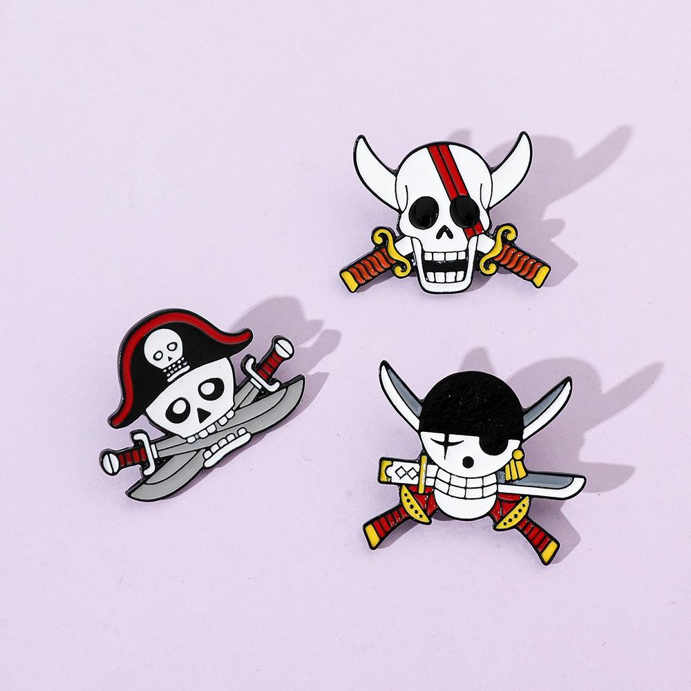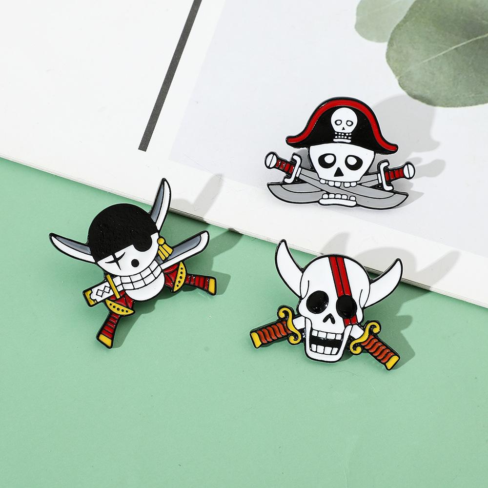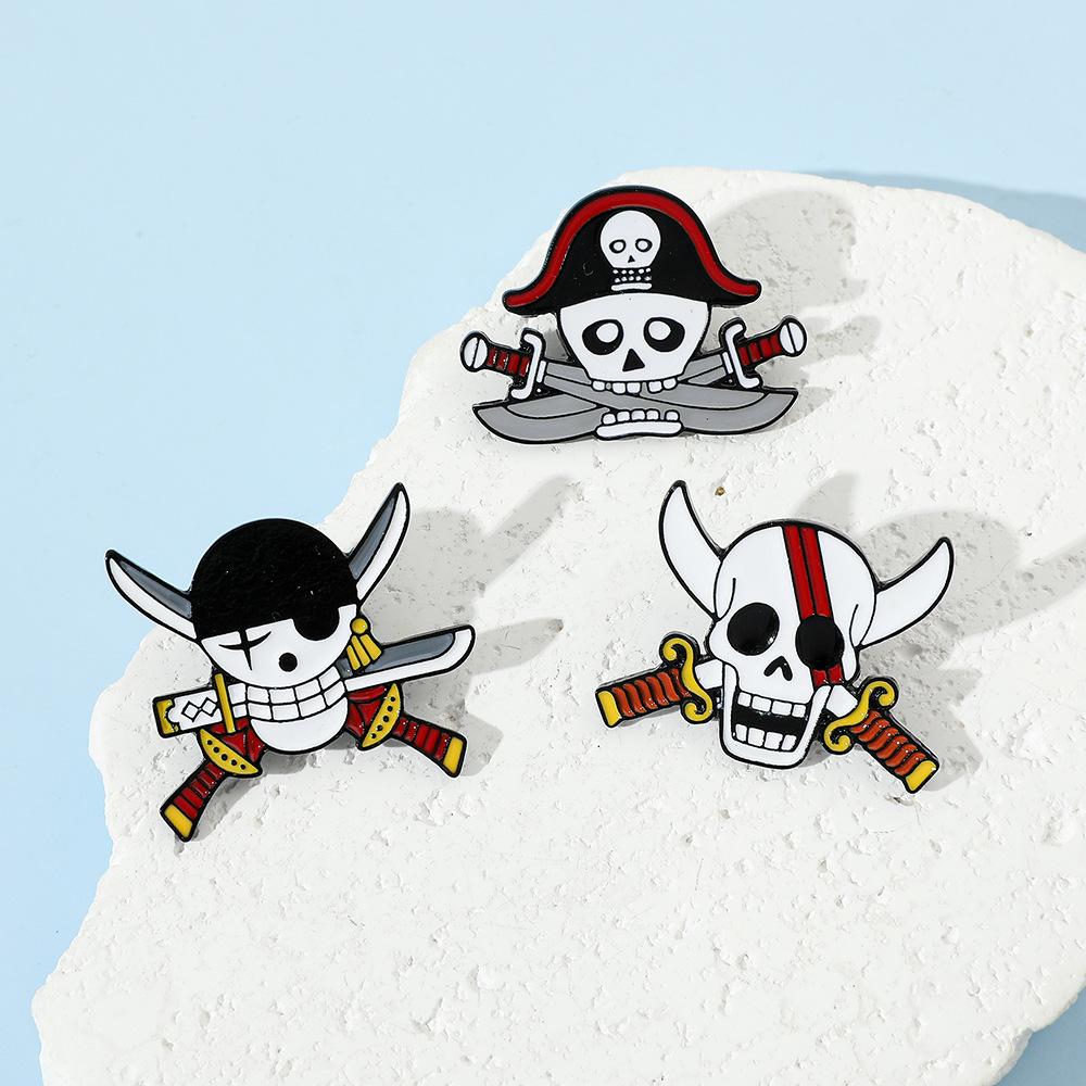 Insignia de metal de una pieza con dibujos animados de animación creativa personalizada, accesorios, broche de aleación de calavera con gota de aceite, decoración