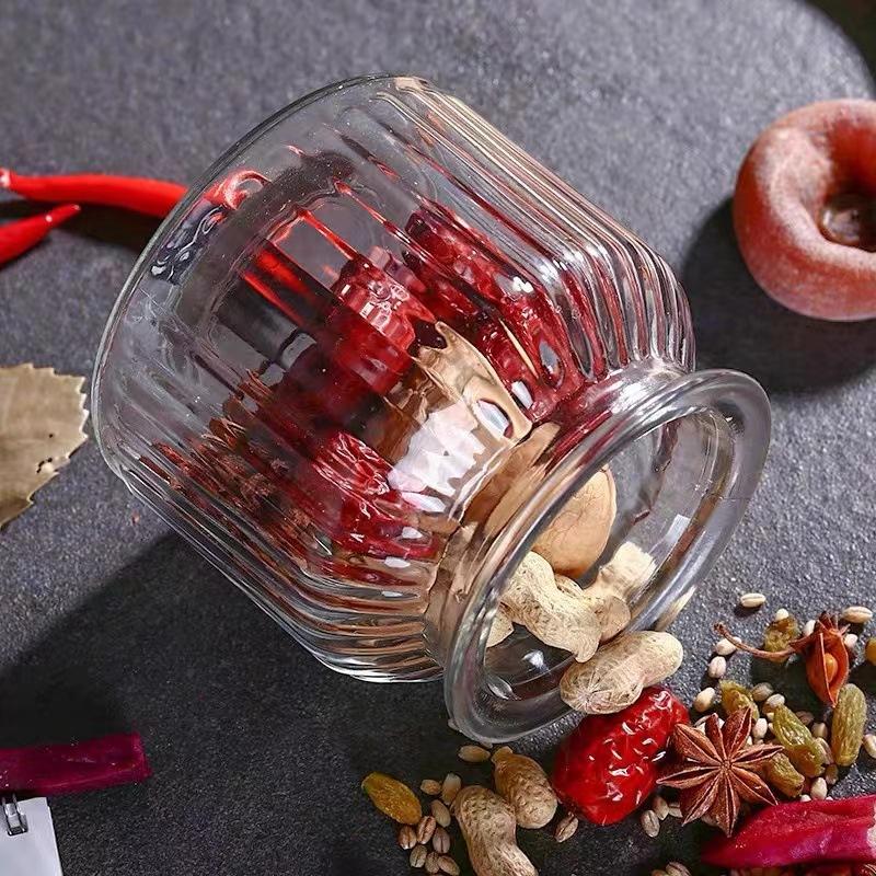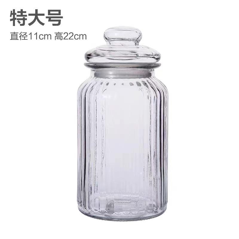 Tarro de vidrio para té, tarro sellado, tarro transparente para almacenar granos domésticos, tarro sellado para frutos secos con tapa, botella con tira vertical