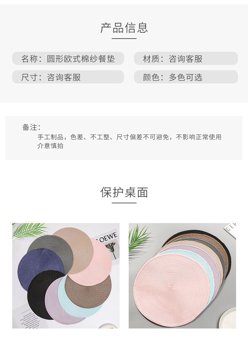 Mantel individual redondo PP38 cm, tapete aislante, tapete de mesa de centro estilo europeo, tapete de frutas, exclusivo transfronterizo