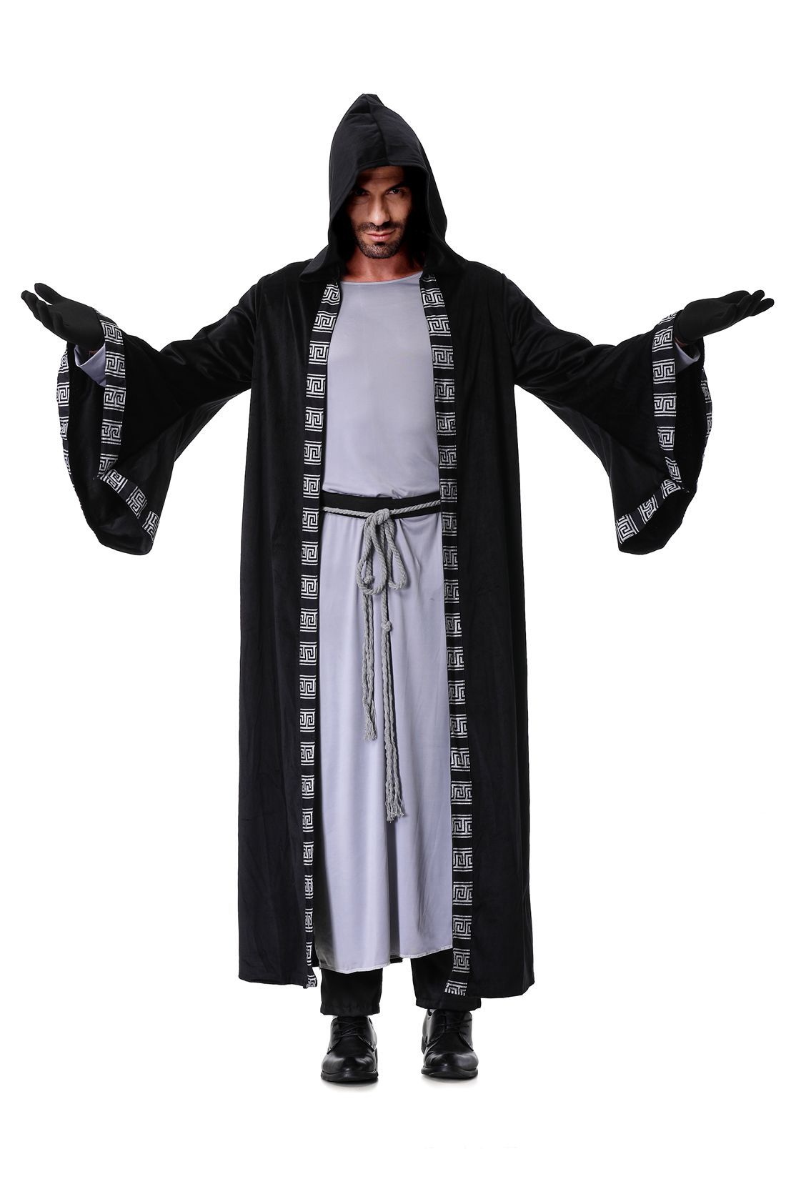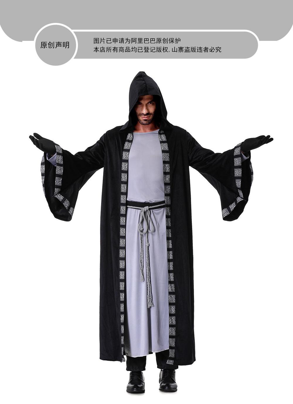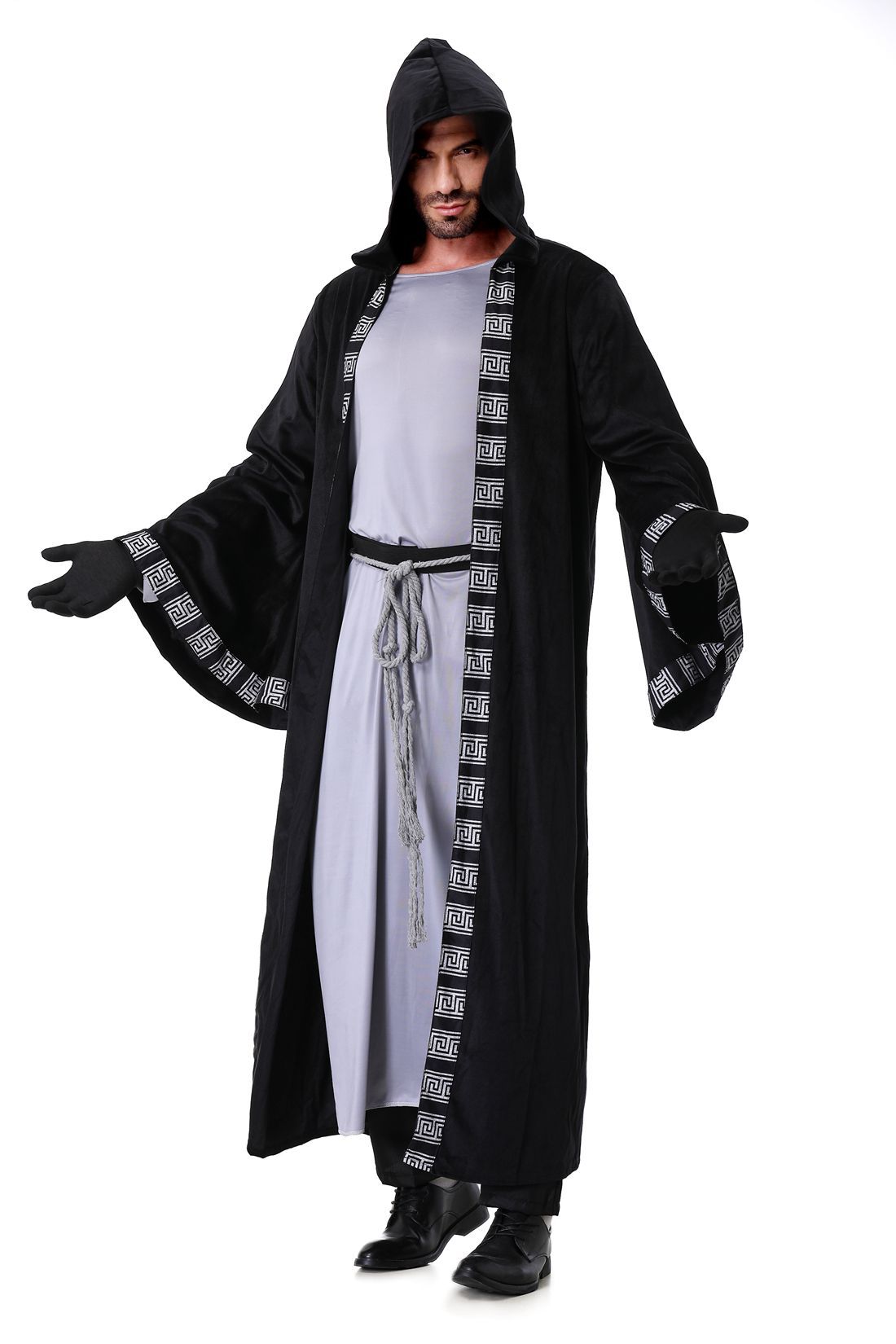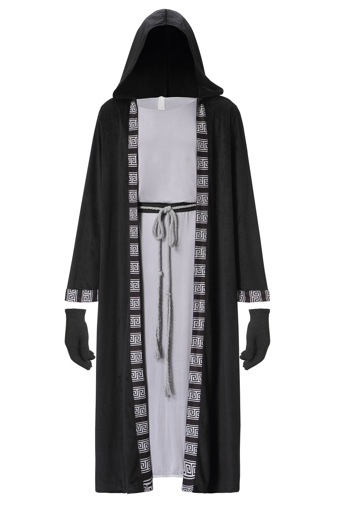 Europeo y Americano Nuevo Halloween Retro Medieval Cosplay Mago Muerte Capa con Capucha Ropa Exterior Disfraz