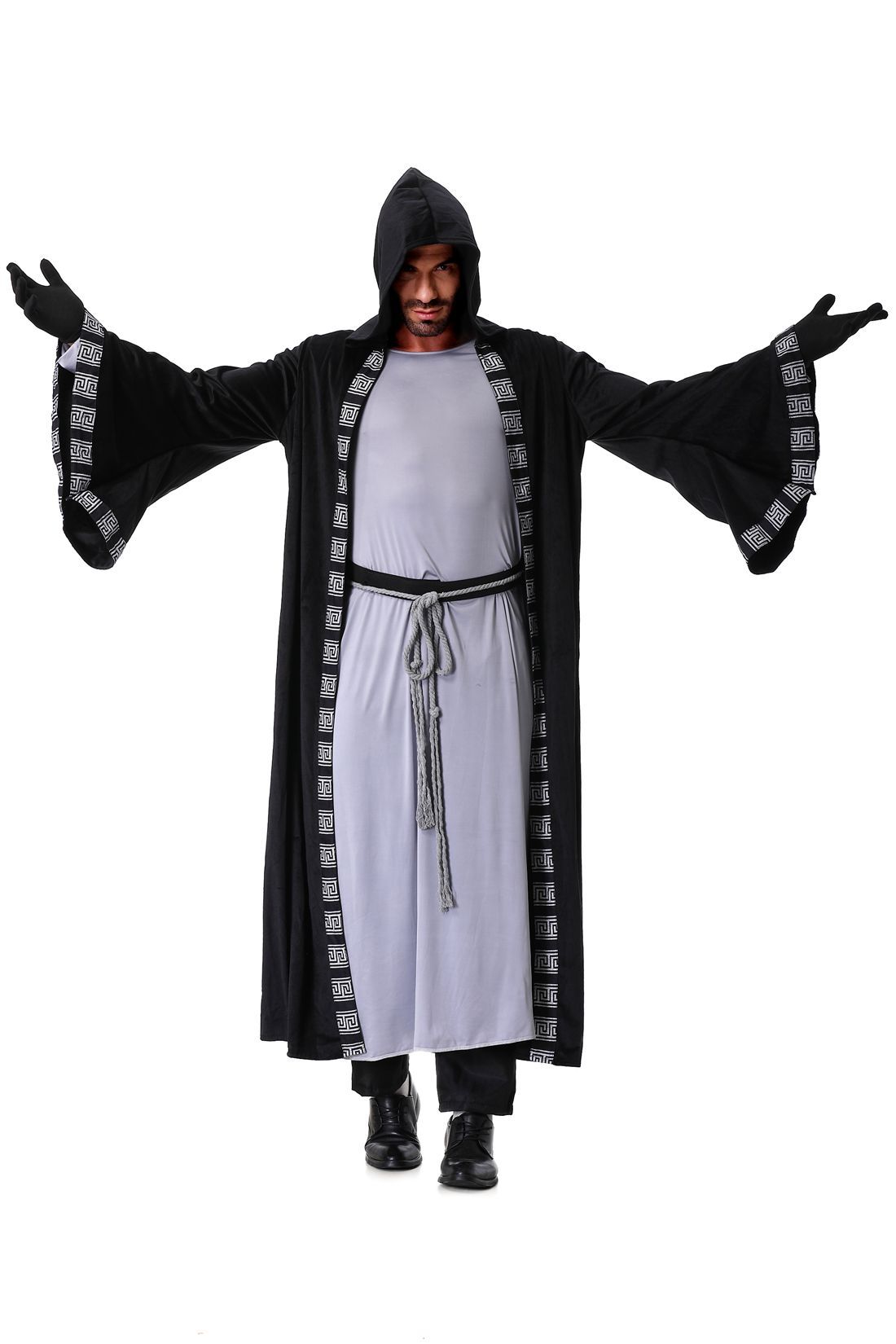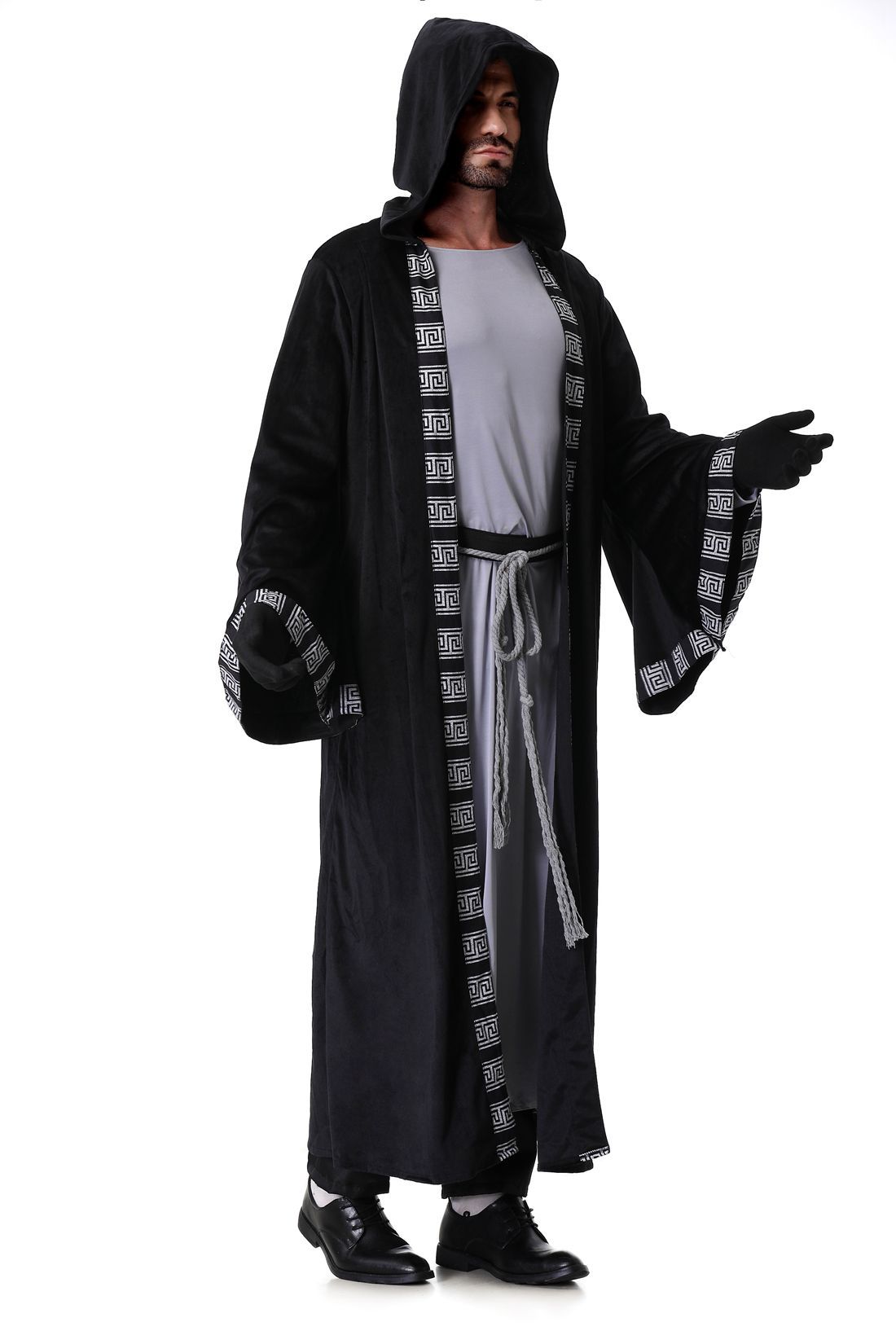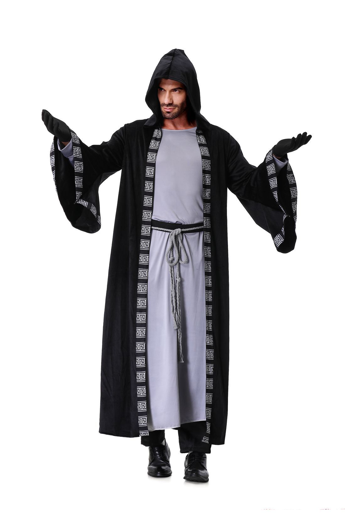 Europeo y Americano Nuevo Halloween Retro Medieval Cosplay Mago Muerte Capa con Capucha Ropa Exterior Disfraz