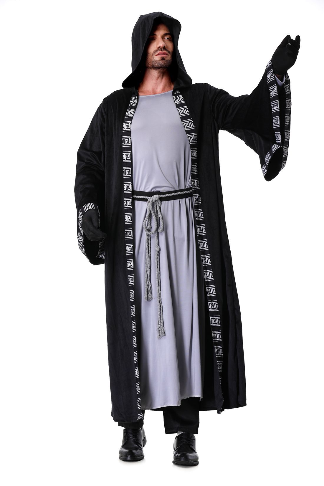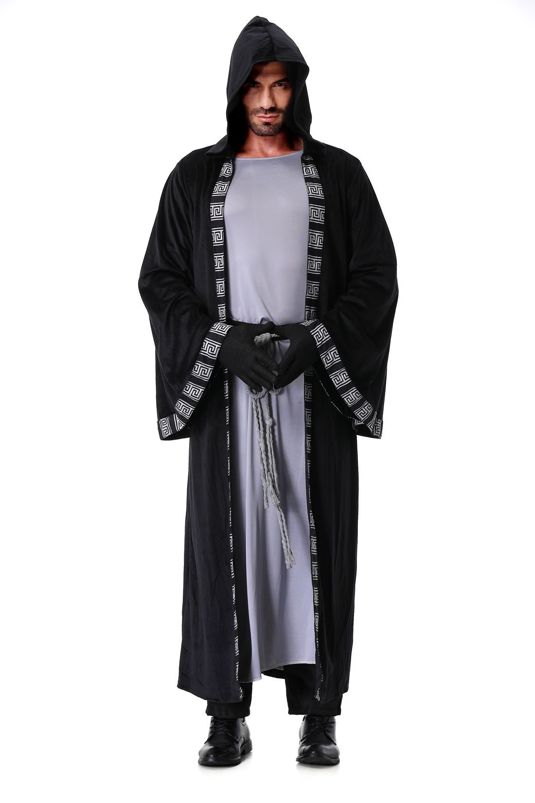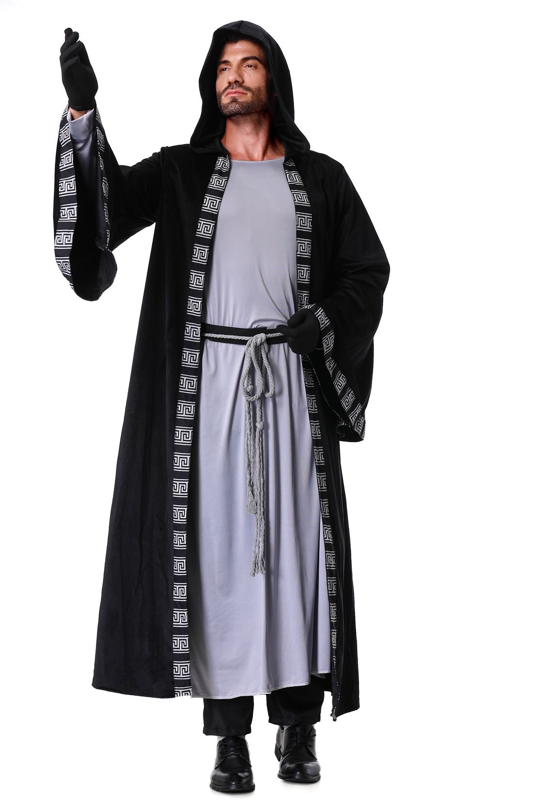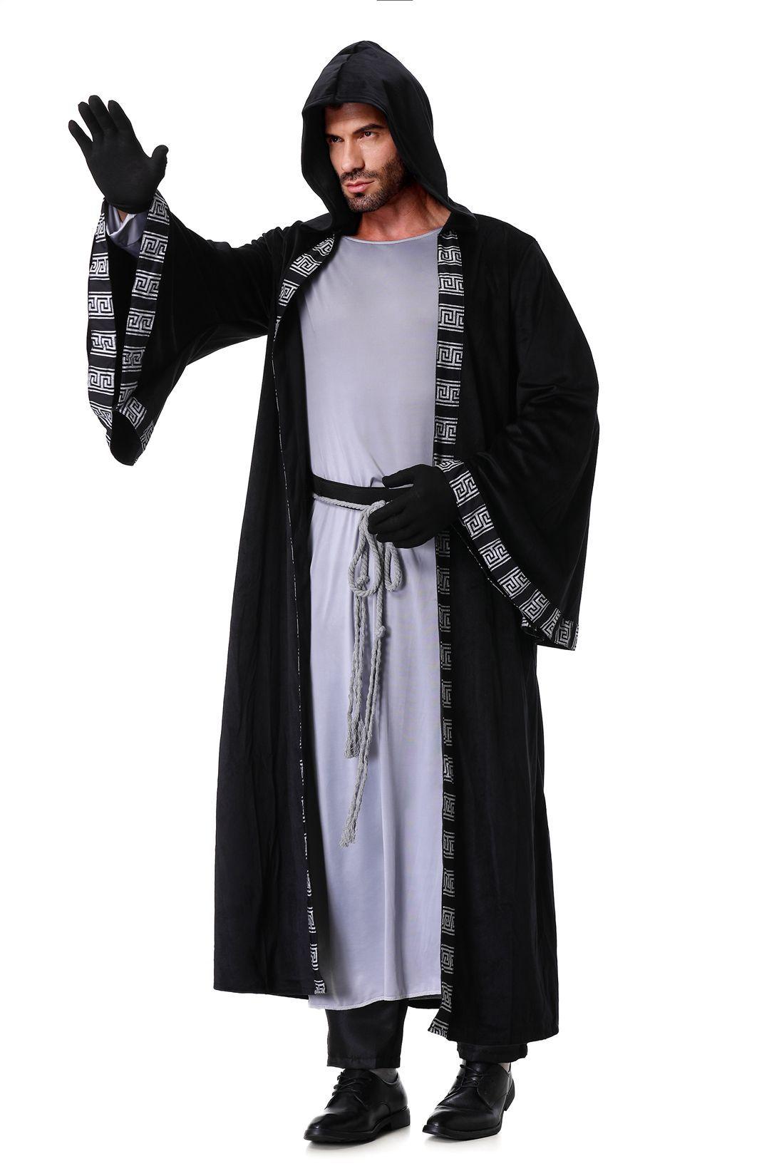 Europeo y Americano Nuevo Halloween Retro Medieval Cosplay Mago Muerte Capa con Capucha Ropa Exterior Disfraz