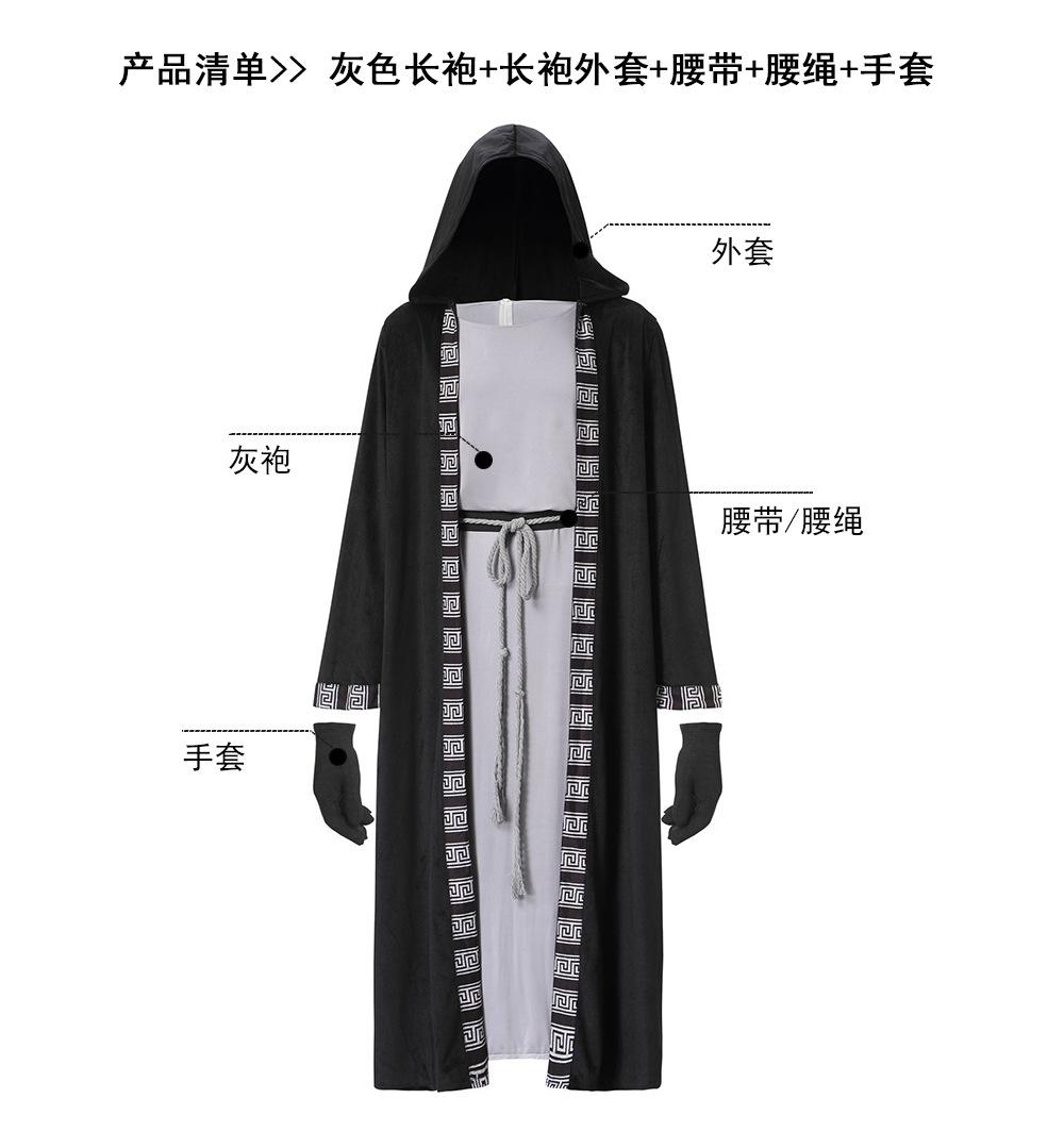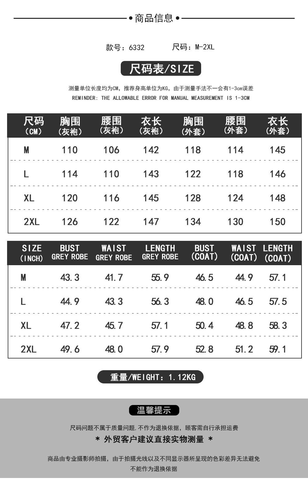 6332 [grey robe + robe jacket + belt + waist rope + gloves] XL