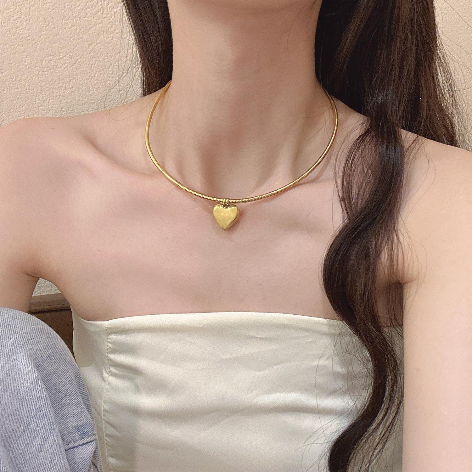 Nuevo Collar de Acero de Titanio con Colgante de Corazón Estilo Ins para Mujer, Simple, Versátil, de Alta Gama, Anillo para el Cuello, Collar, Ropa