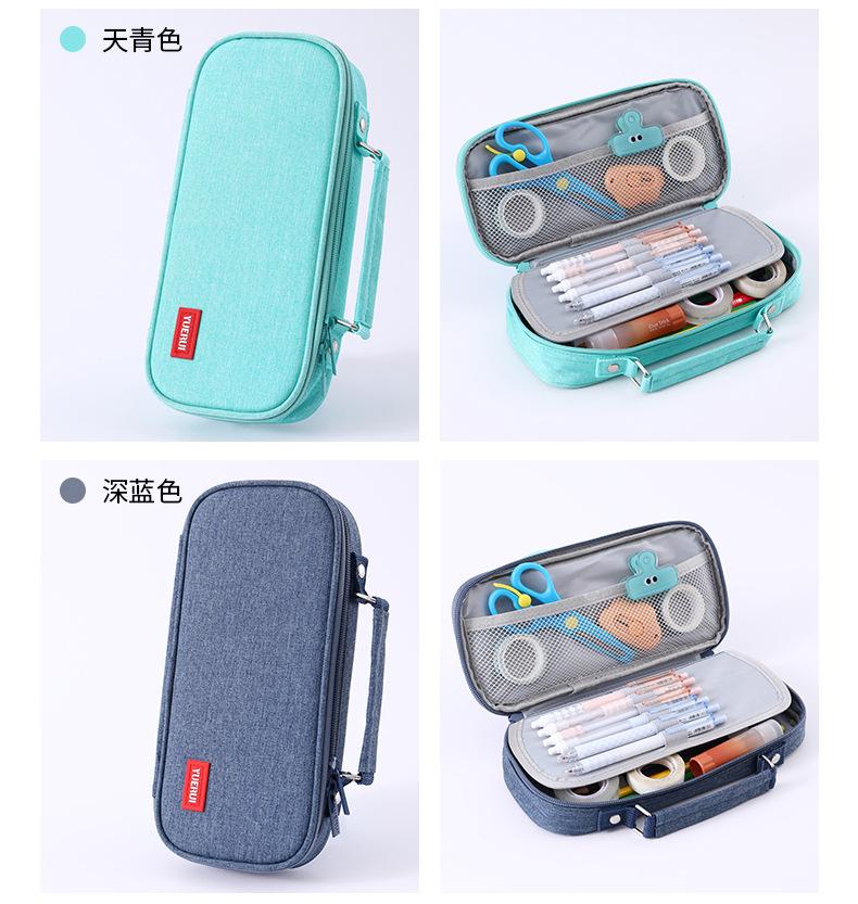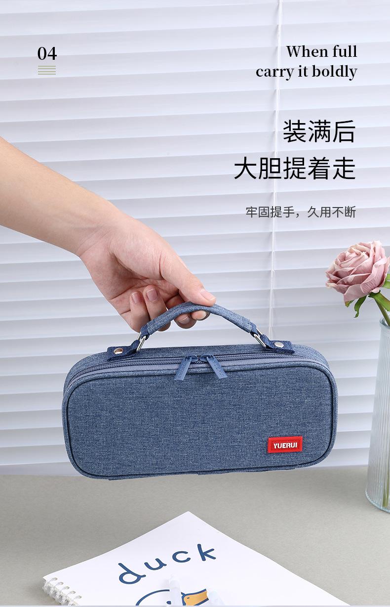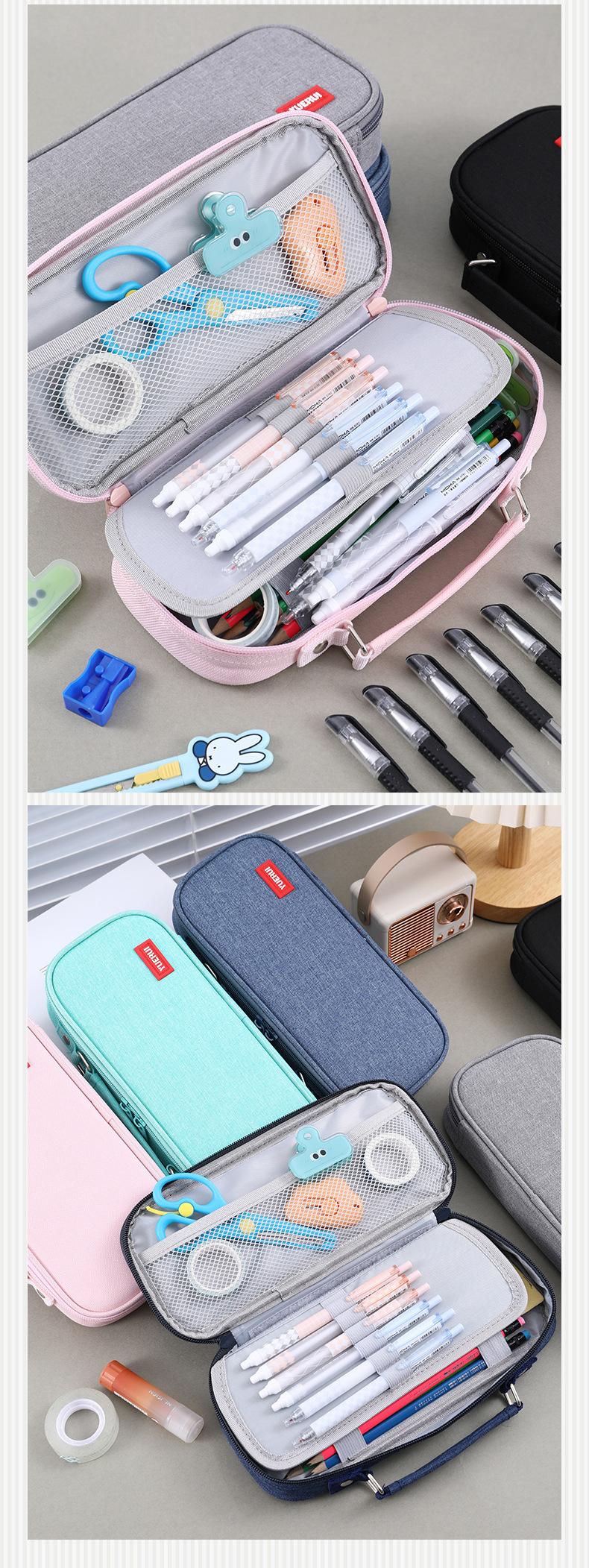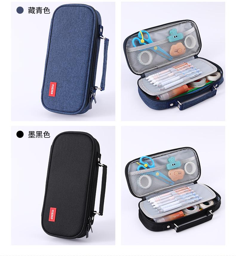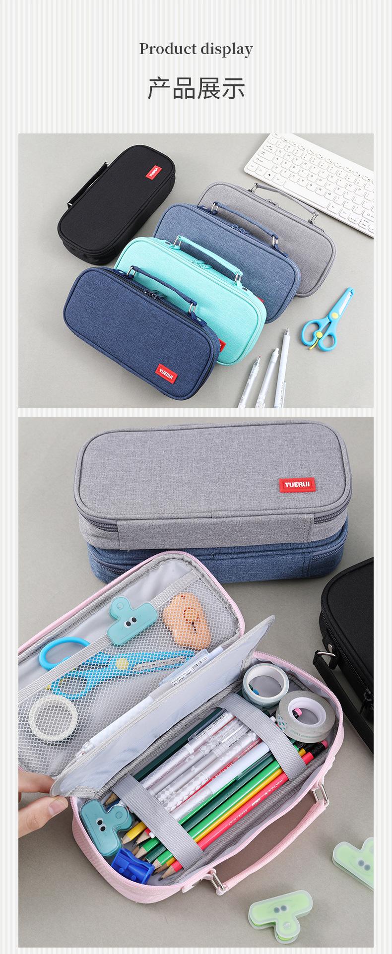 Bolsa de Papelería Portátil Caja de Papelería para Exámenes para Estudiantes de Primaria Estuche de Lápices de Tres Capas Lona Almacenamiento Multifuncional Ligero