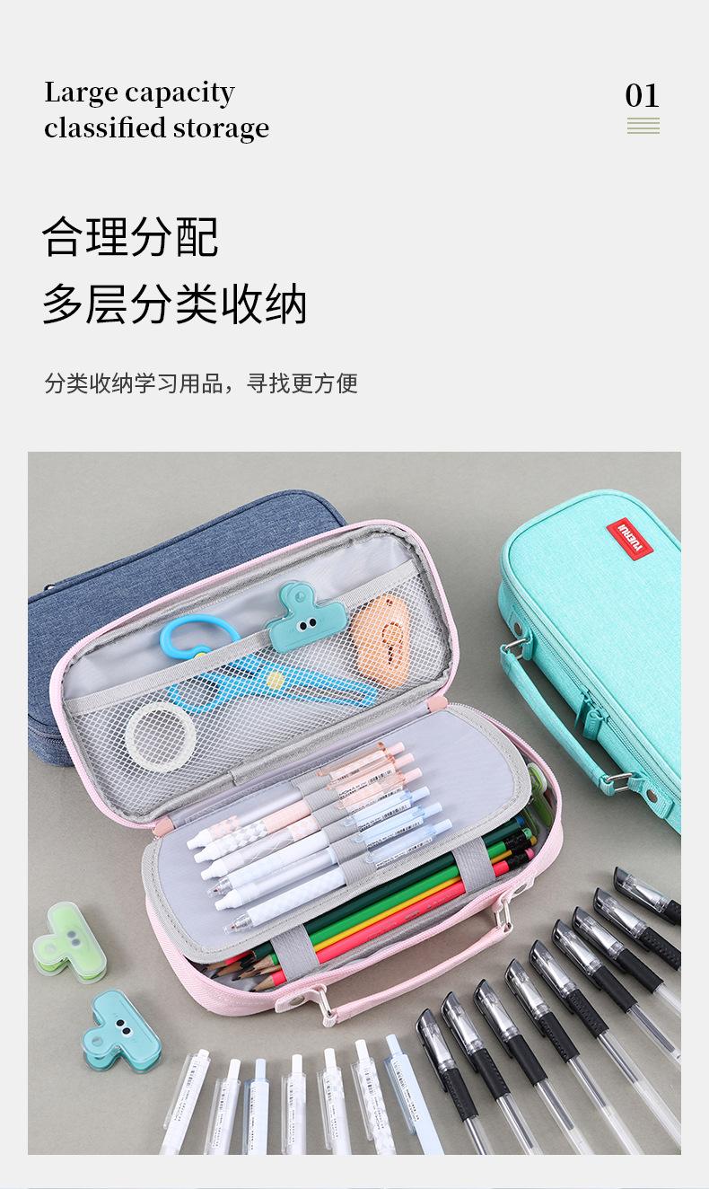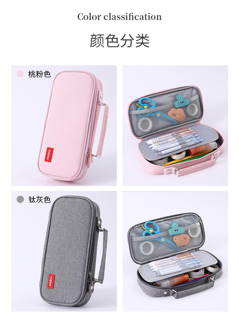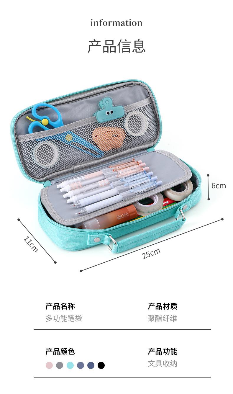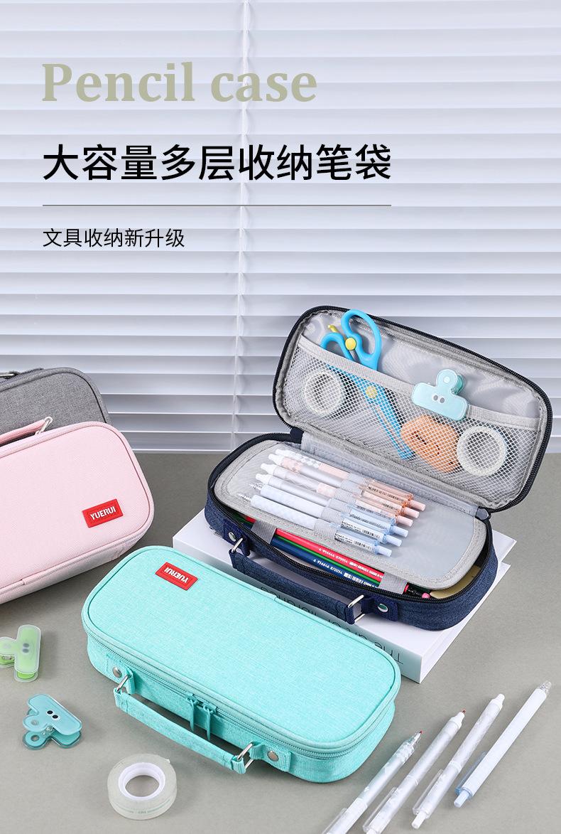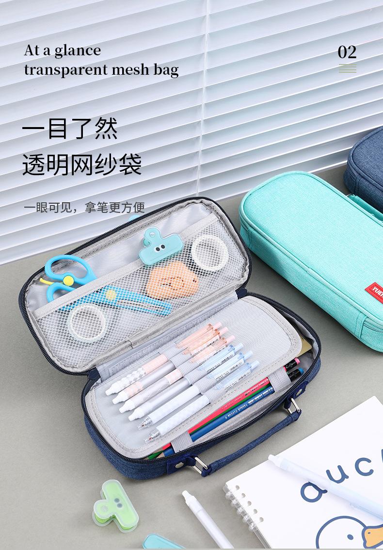 Bolsa de Papelería Portátil Caja de Papelería para Exámenes para Estudiantes de Primaria Estuche de Lápices de Tres Capas Lona Almacenamiento Multifuncional Ligero