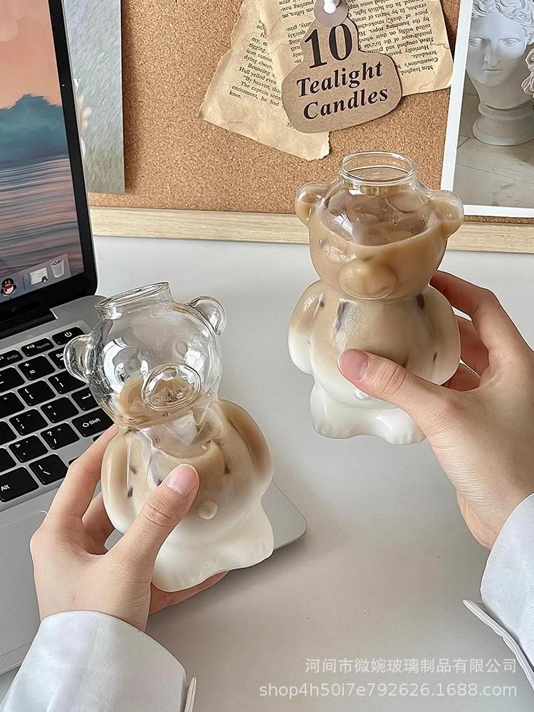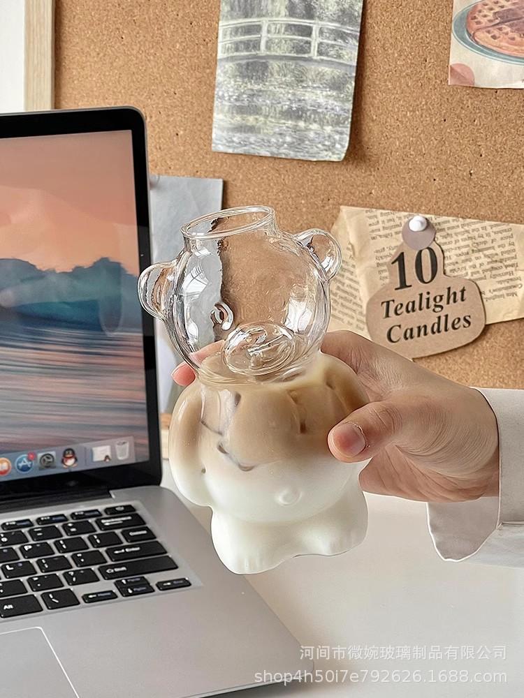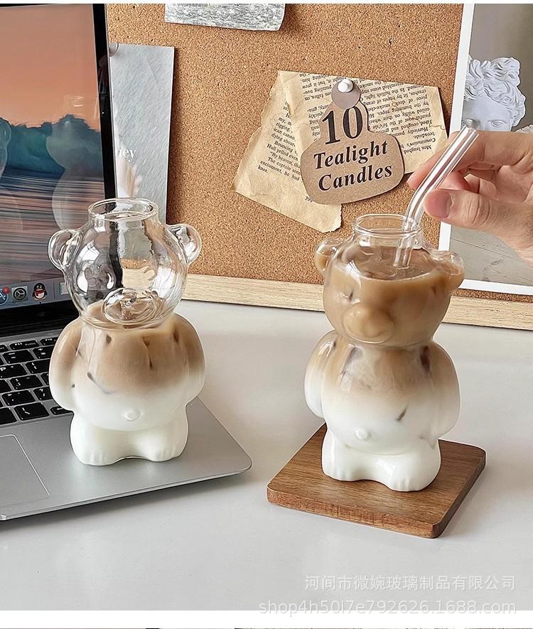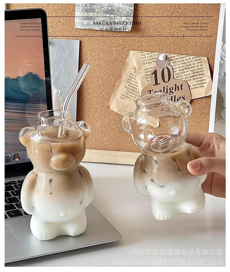 Vaso Vidrio Borosilicato Alto Transparente Vidrio Hogar Resistente al Calor Una Sola Capa Estilo Ins Restaurante Lindo Dibujo Animado Jugo Vaso de Una Sola Capa