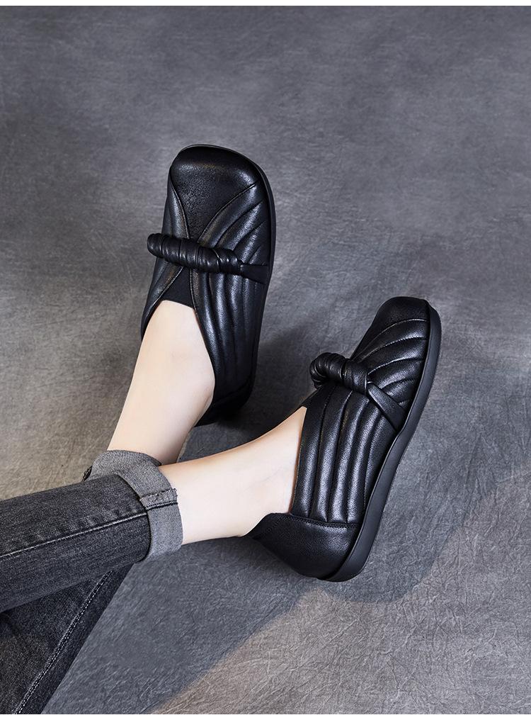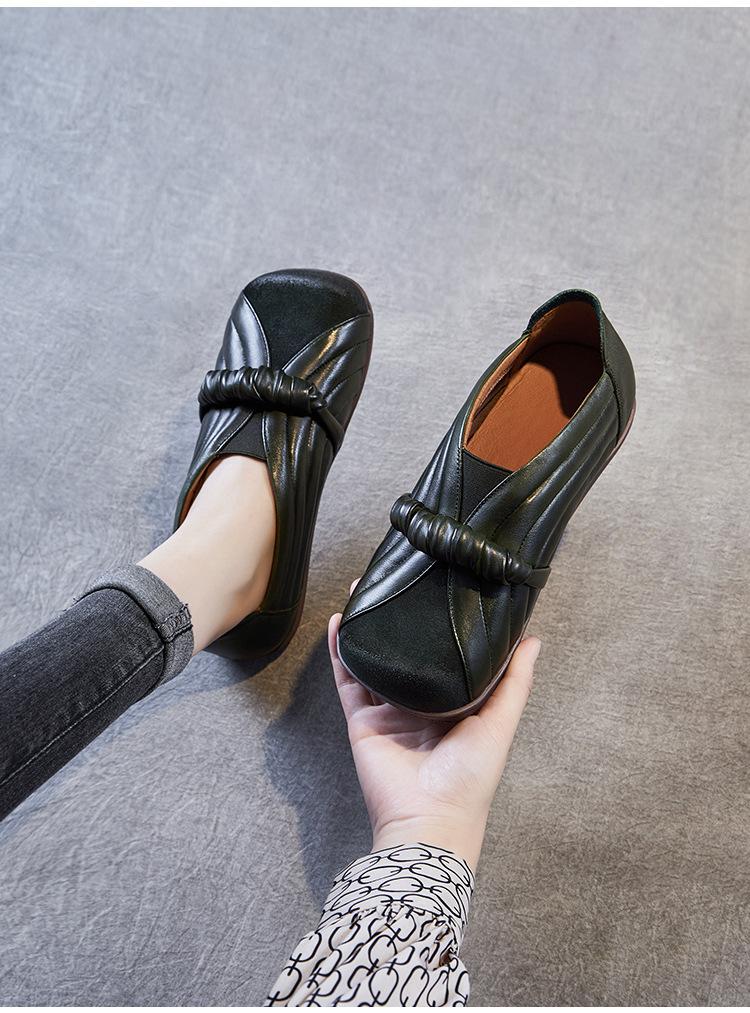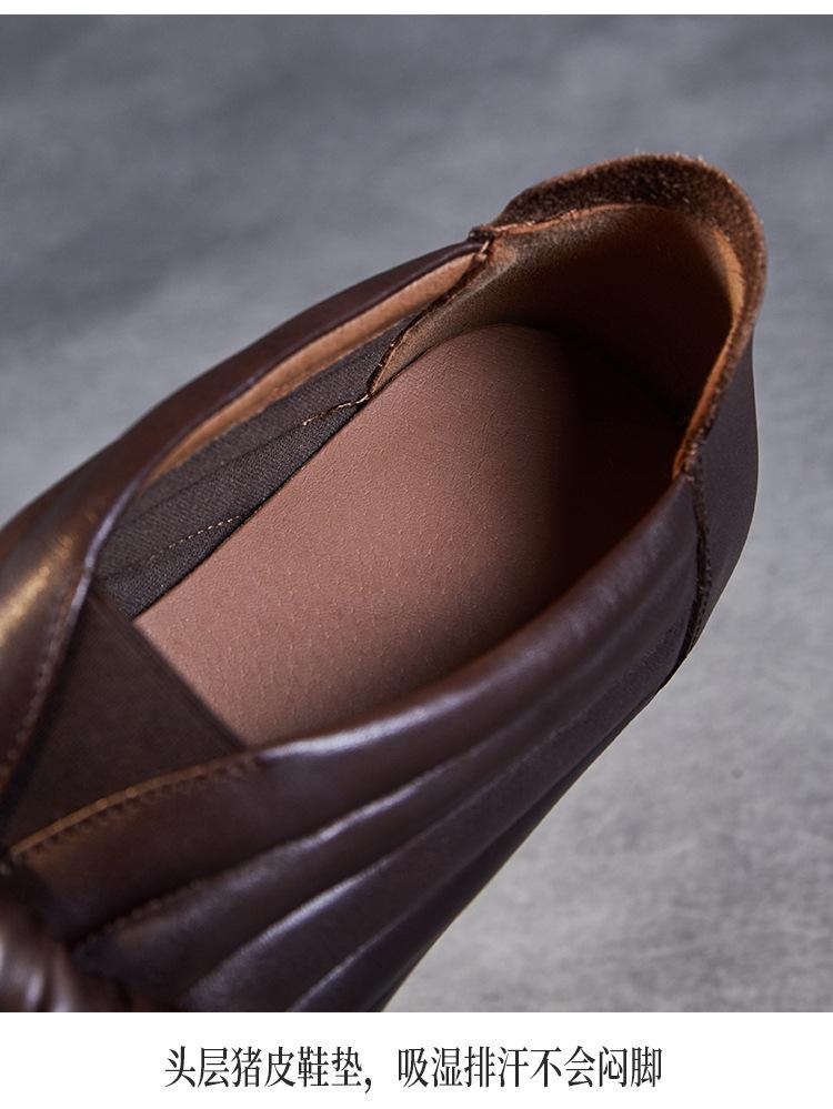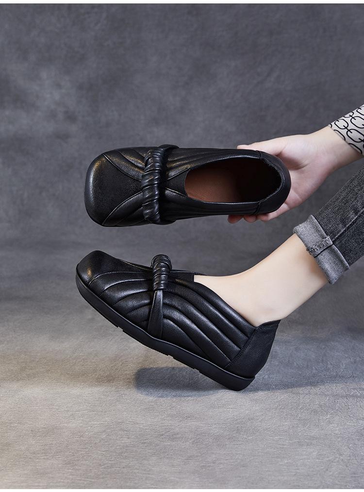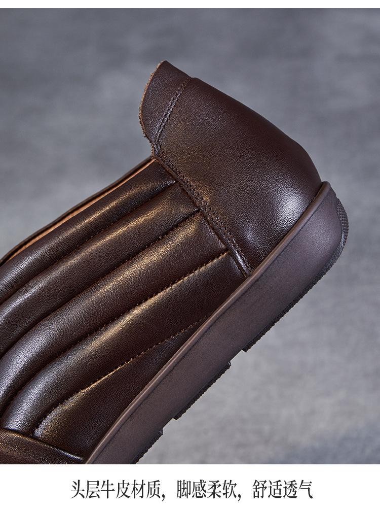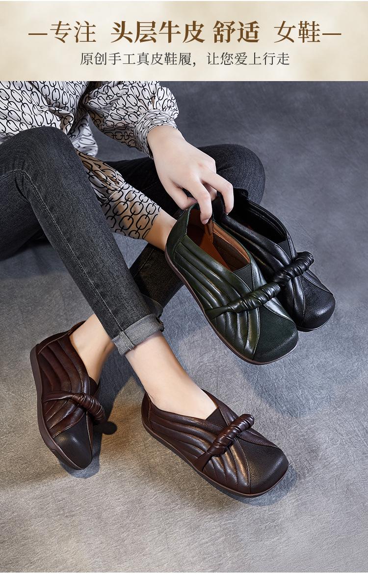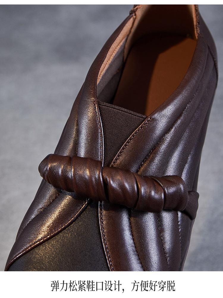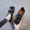 Zapatos de mujer cómodos de piel de vaca de primera capa retro, zapatos planos de estilo étnico con cabeza cuadrada, nuevos mocasines de otoño 2024