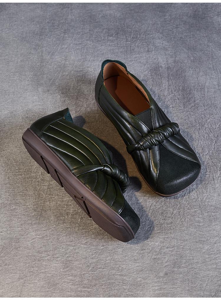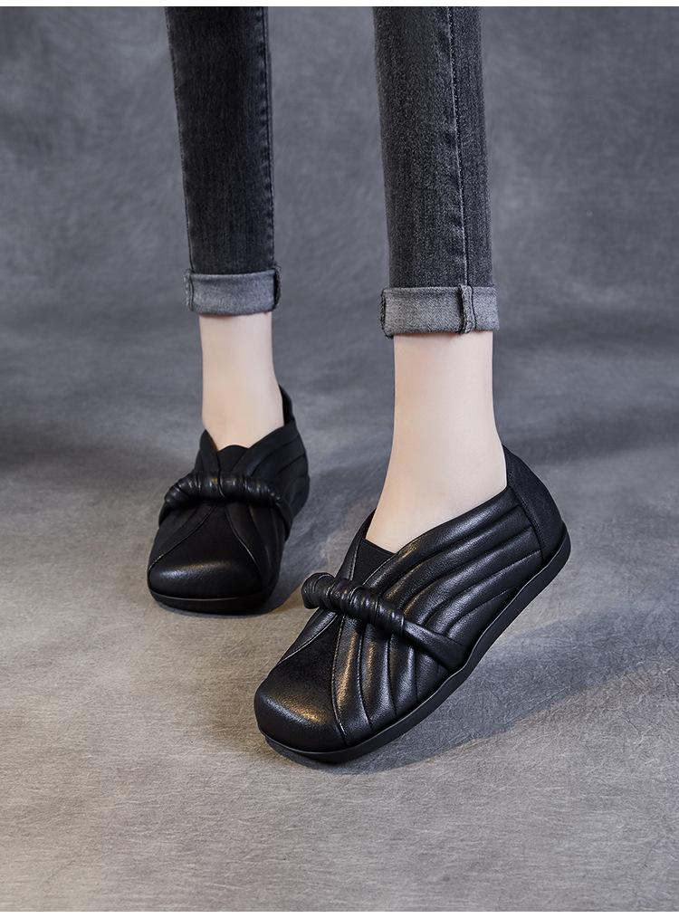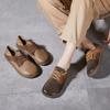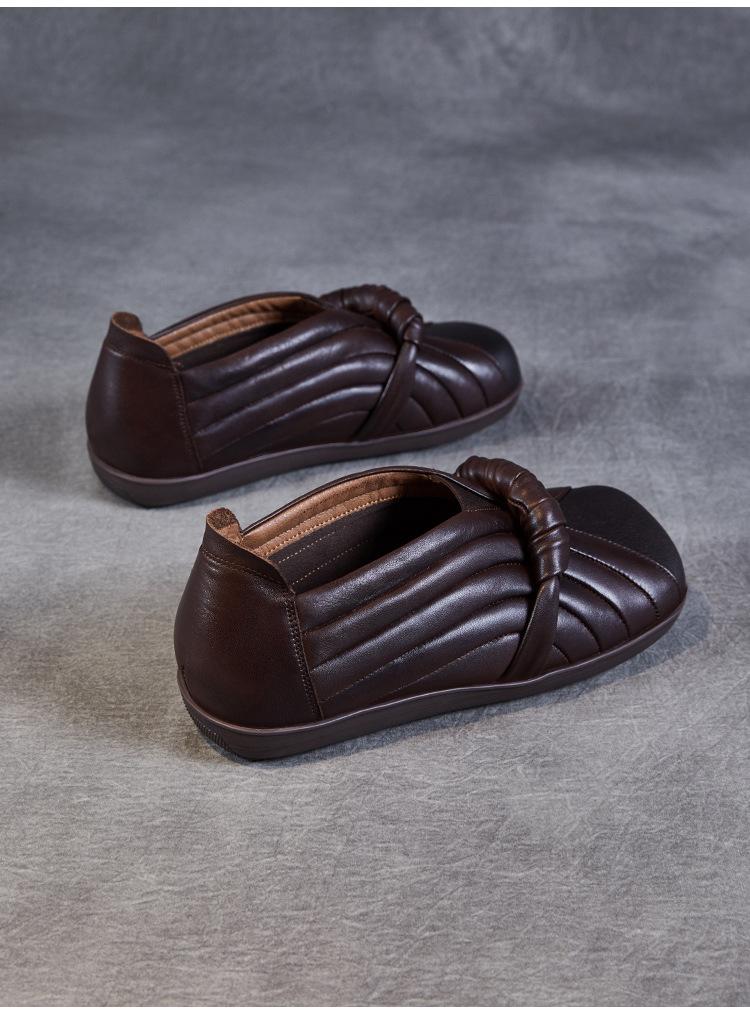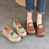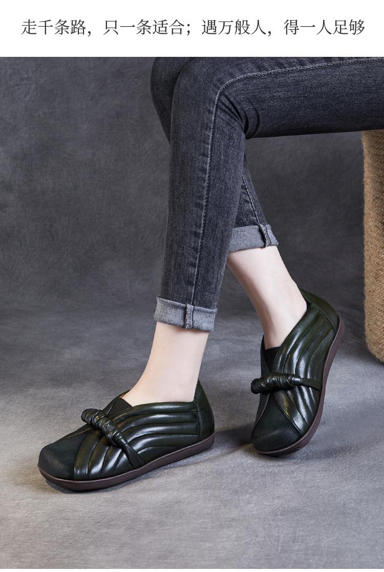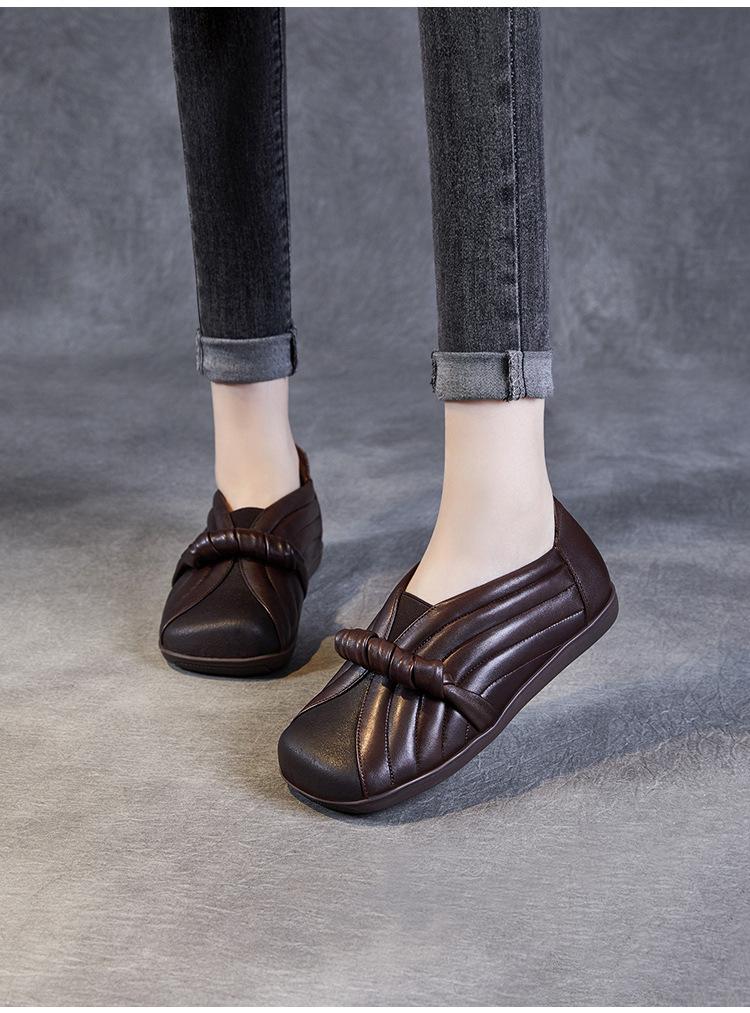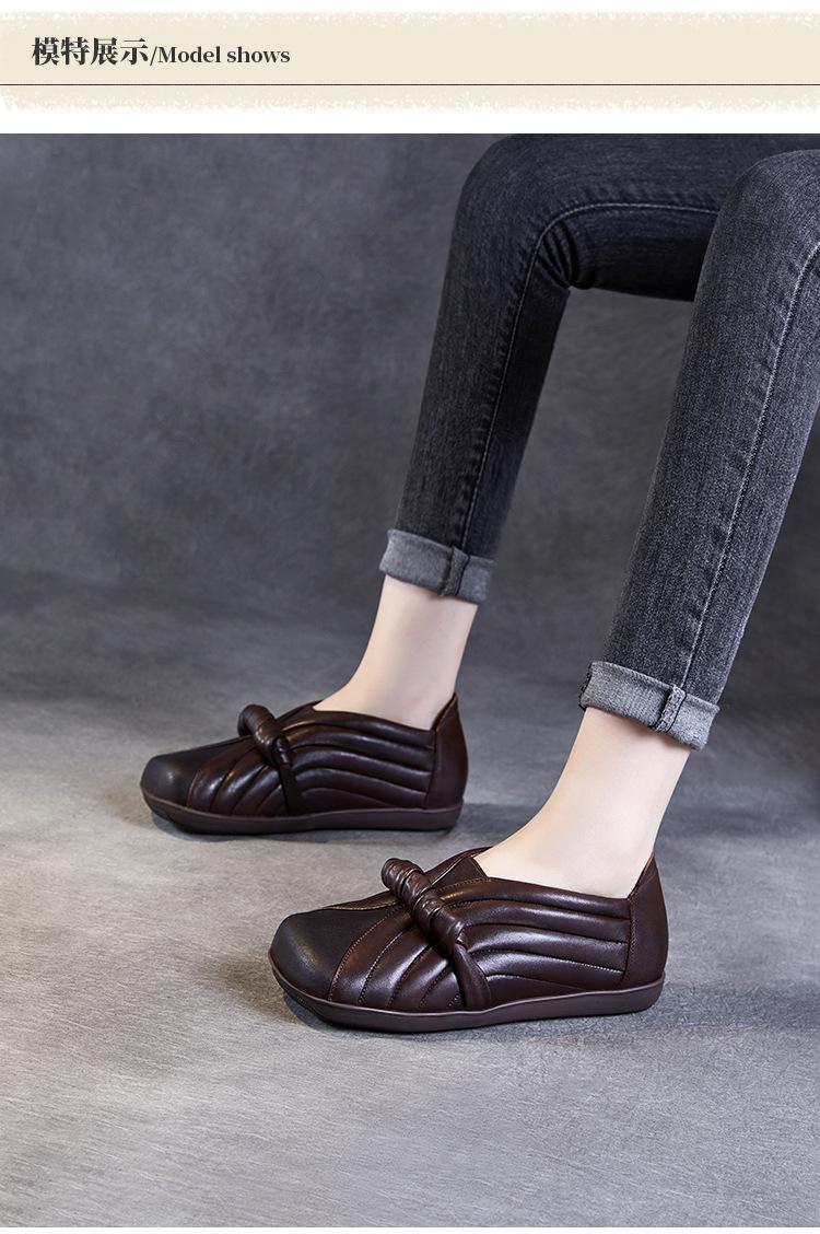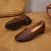 Zapatos de mujer cómodos de piel de vaca de primera capa retro, zapatos planos de estilo étnico con cabeza cuadrada, nuevos mocasines de otoño 2024