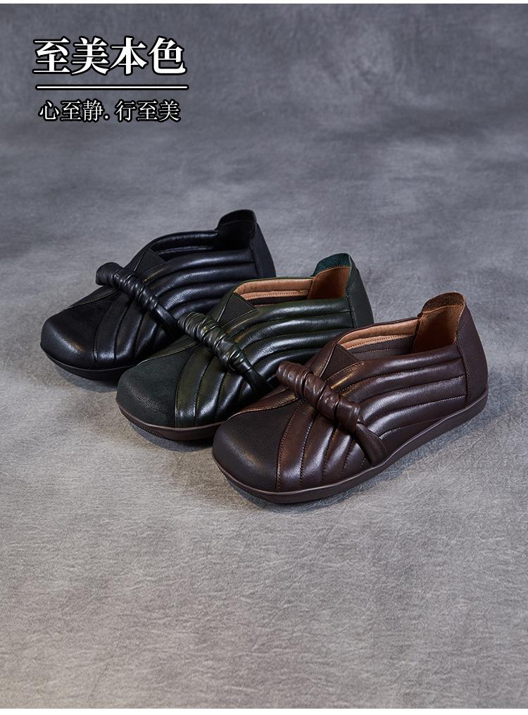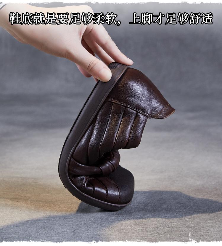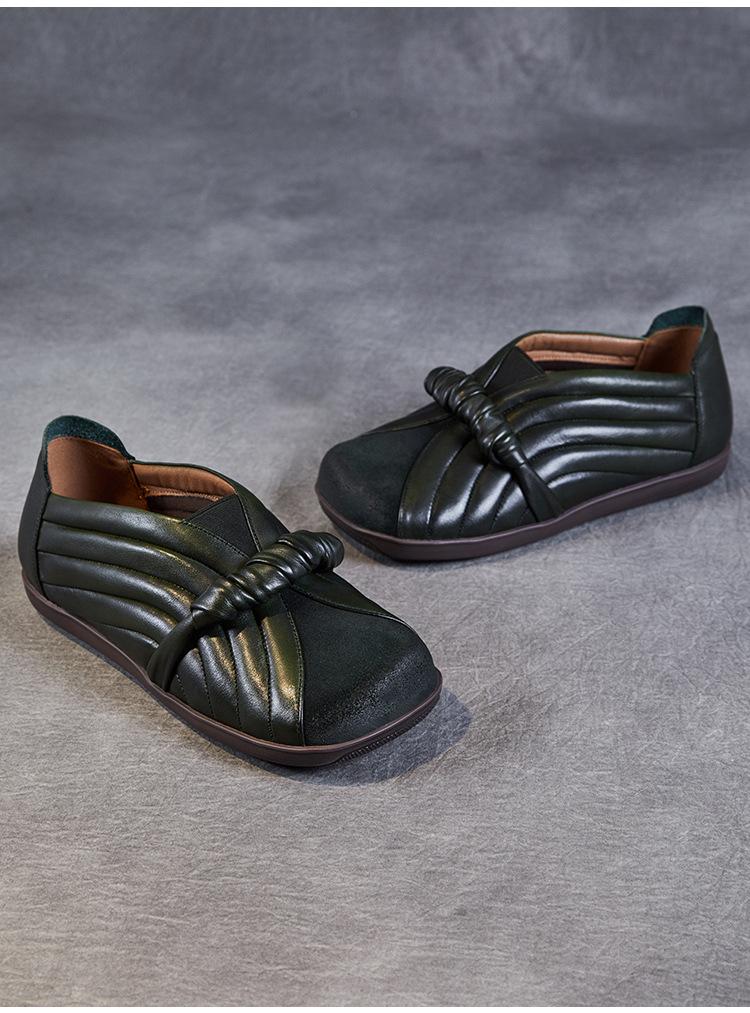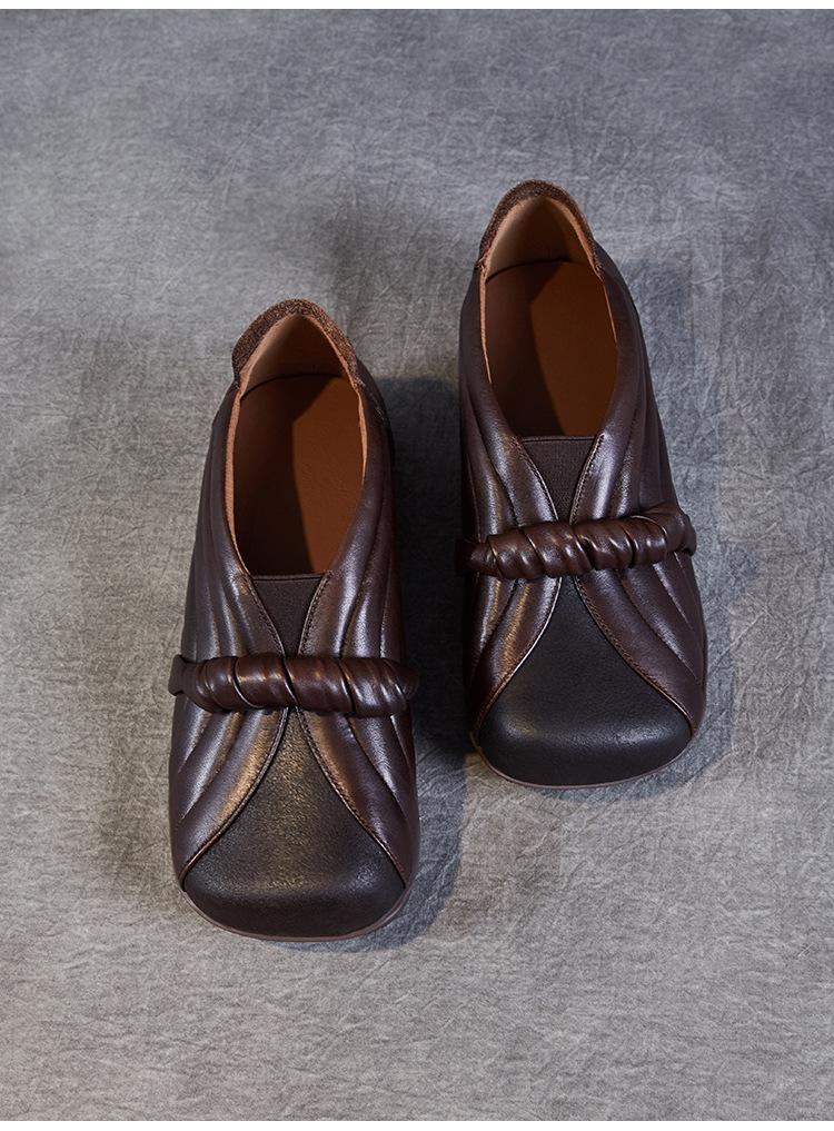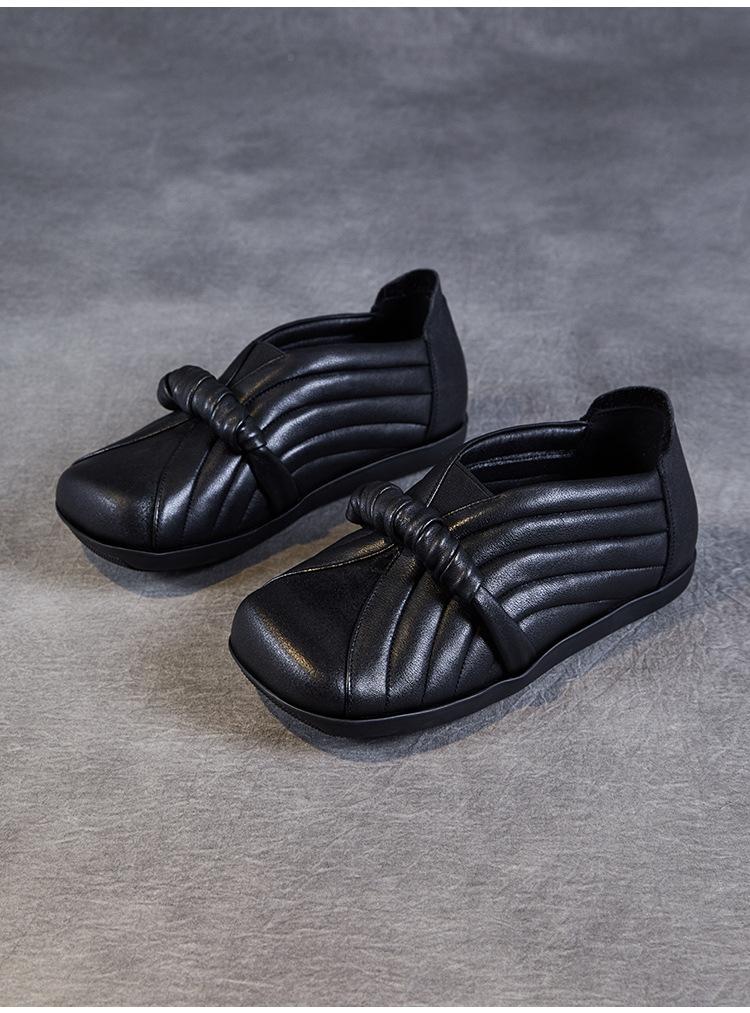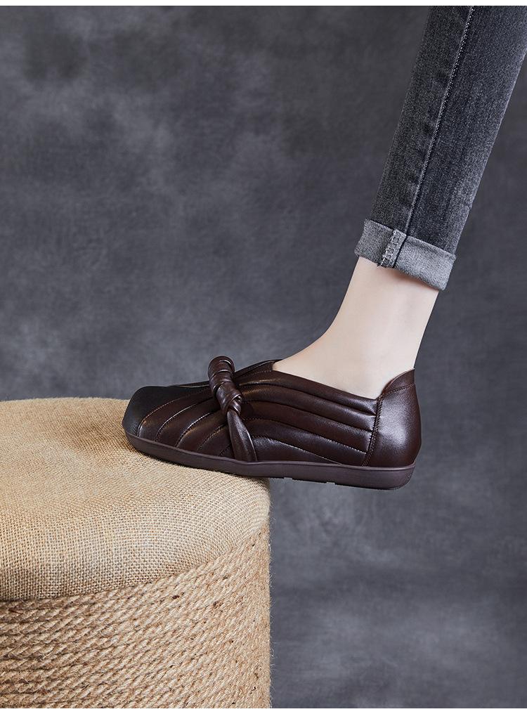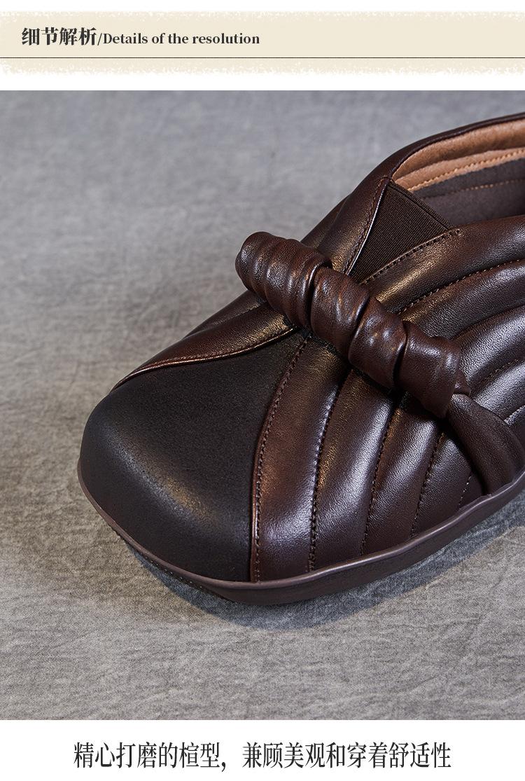 Zapatos de mujer cómodos de piel de vaca de primera capa retro, zapatos planos de estilo étnico con cabeza cuadrada, nuevos mocasines de otoño 2024