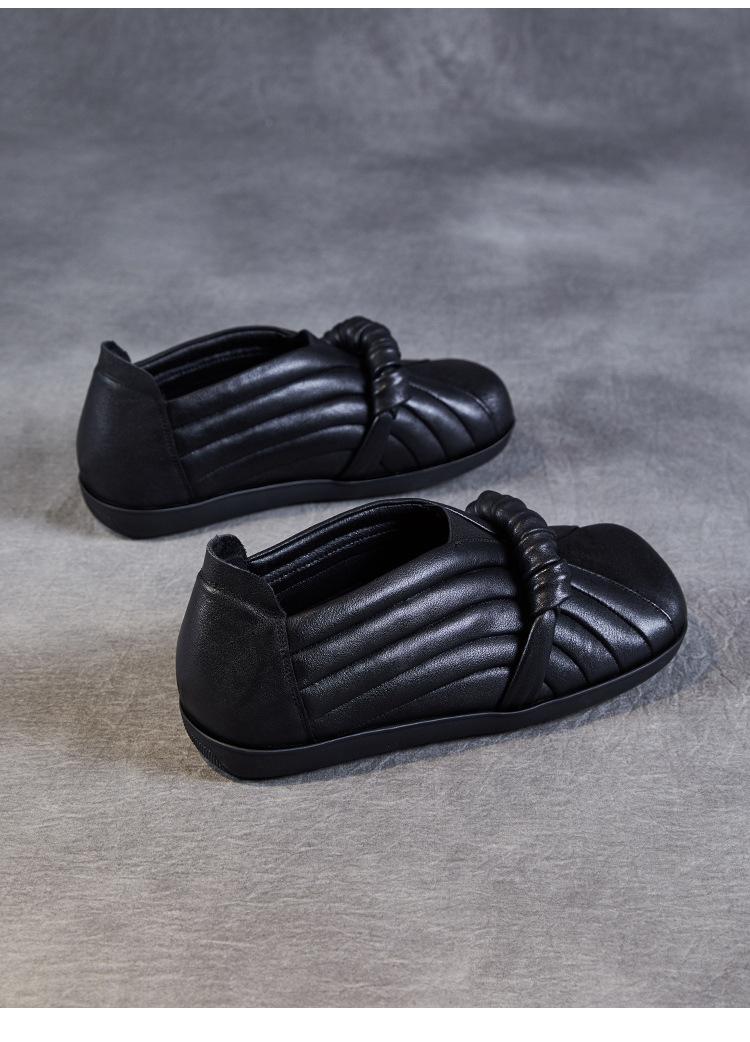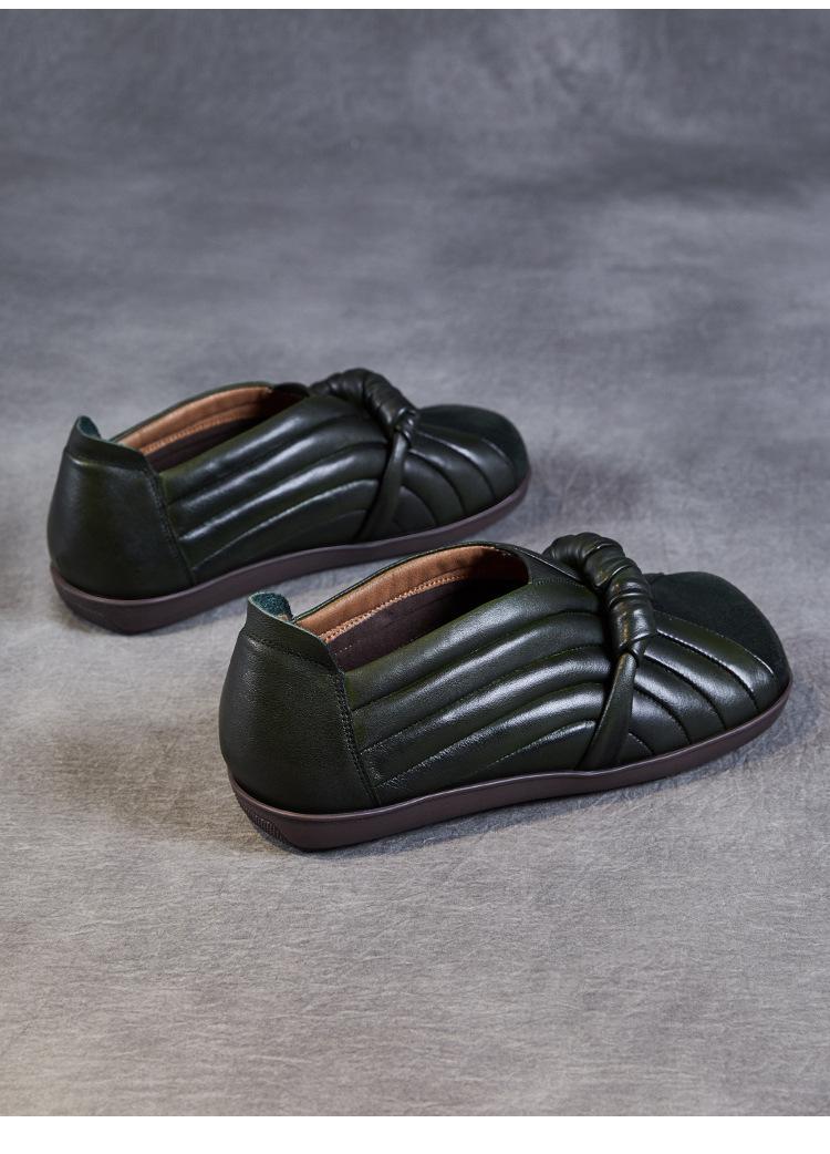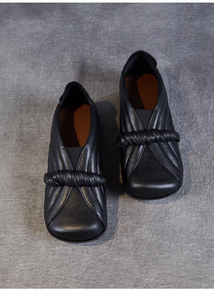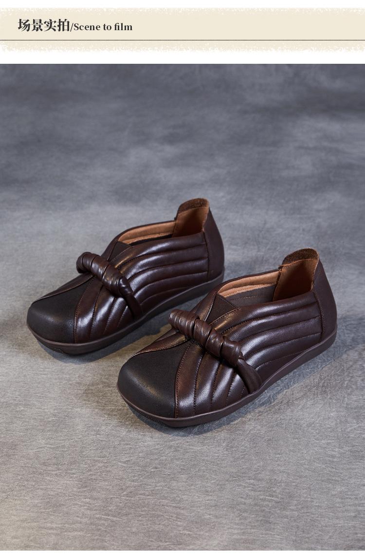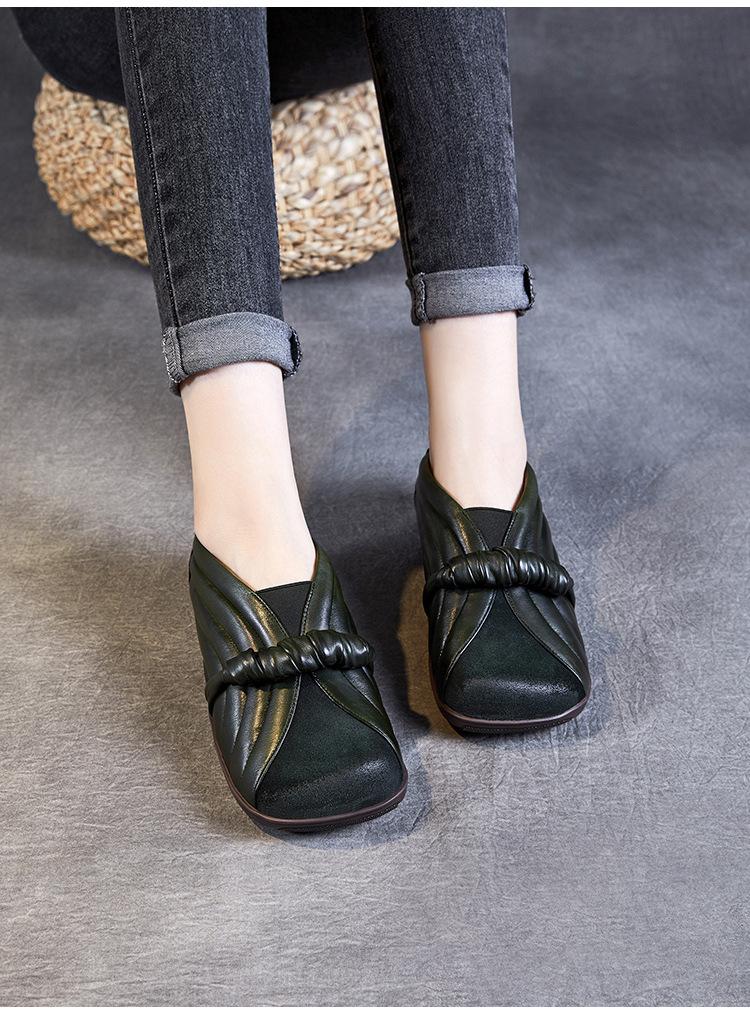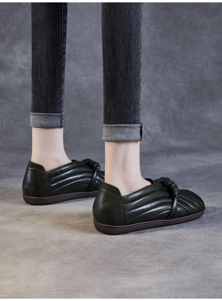 Zapatos de mujer cómodos de piel de vaca de primera capa retro, zapatos planos de estilo étnico con cabeza cuadrada, nuevos mocasines de otoño 2024