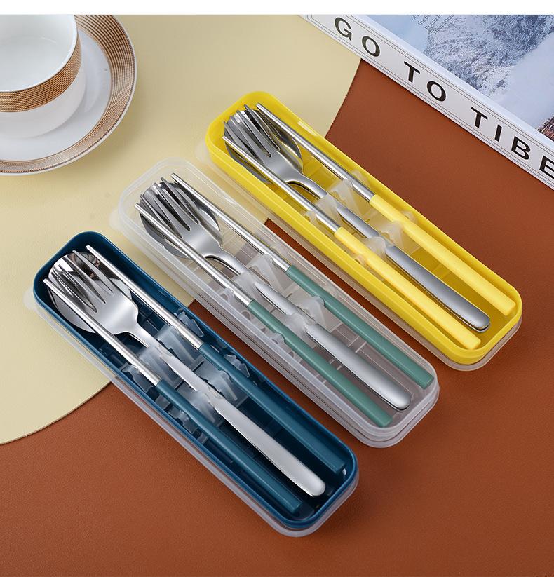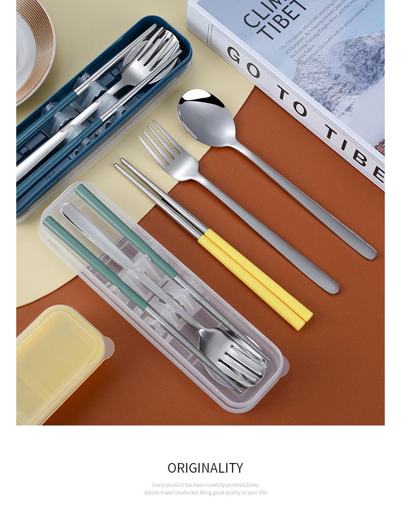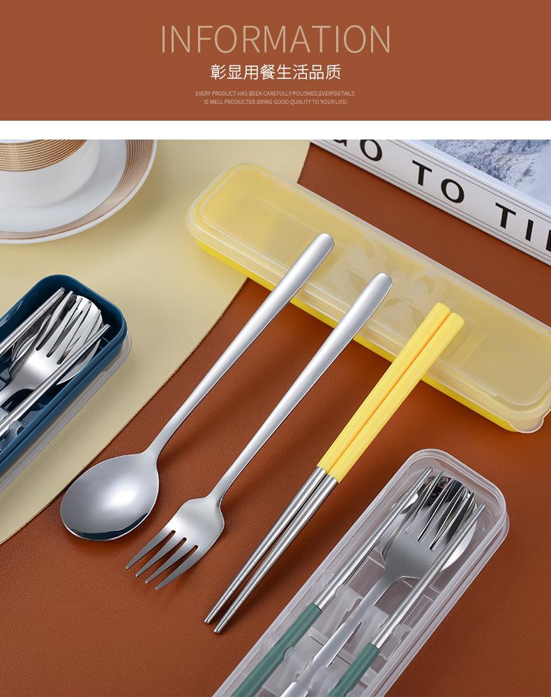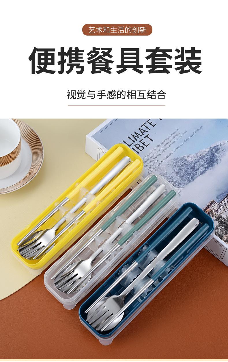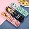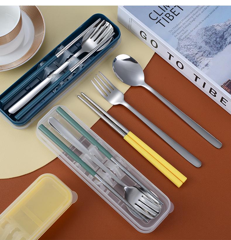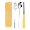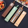 Juego de cubiertos portátiles de acero inoxidable 304 cuchara, tenedor y palillos coreanos de tres piezas cubiertos de viaje para camping al aire libre