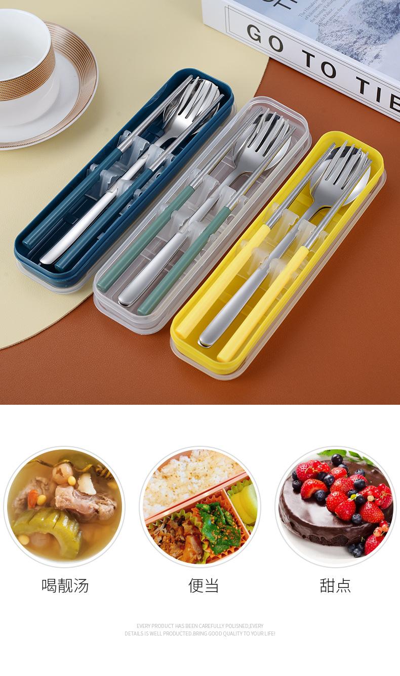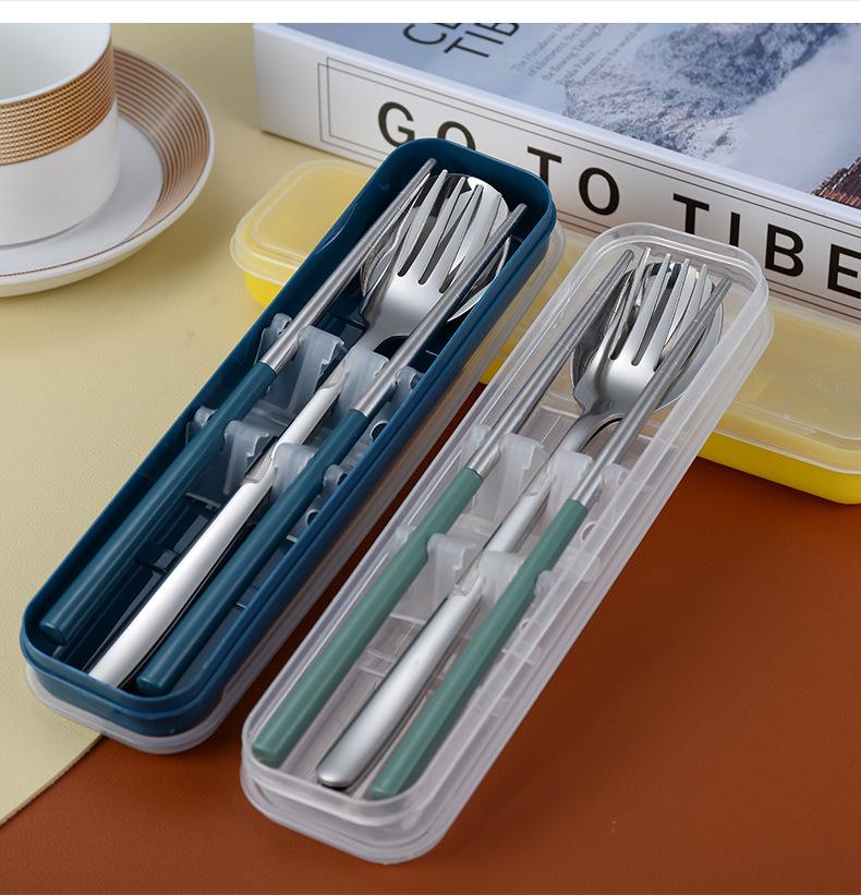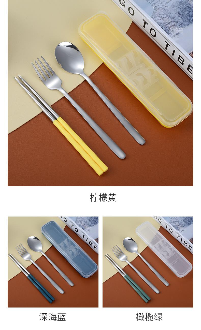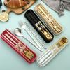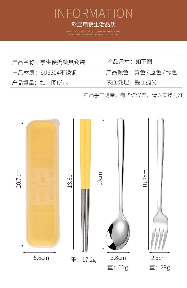 Juego de cubiertos portátiles de acero inoxidable 304 cuchara, tenedor y palillos coreanos de tres piezas cubiertos de viaje para camping al aire libre