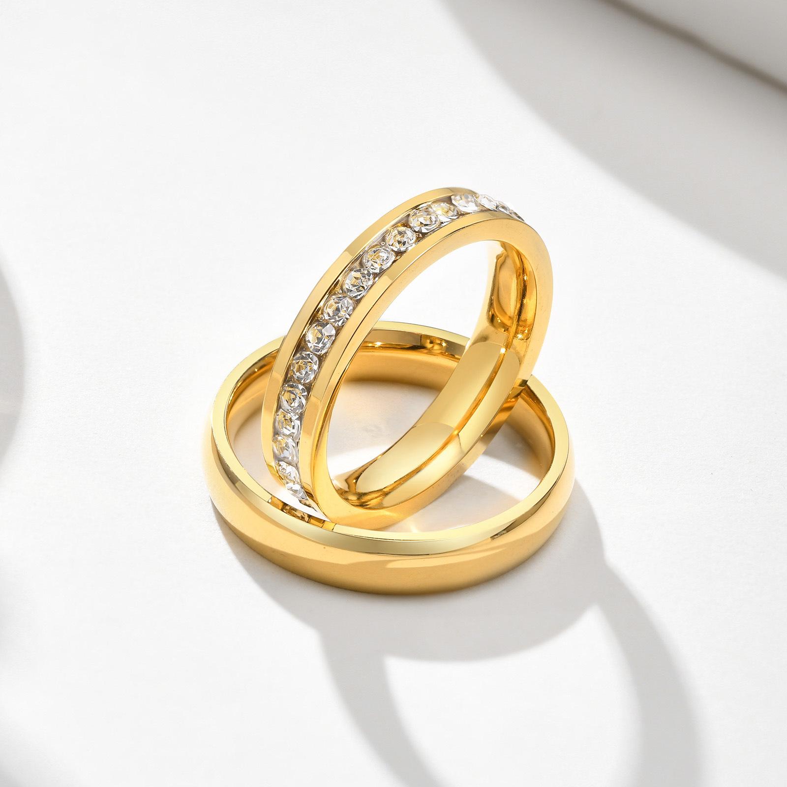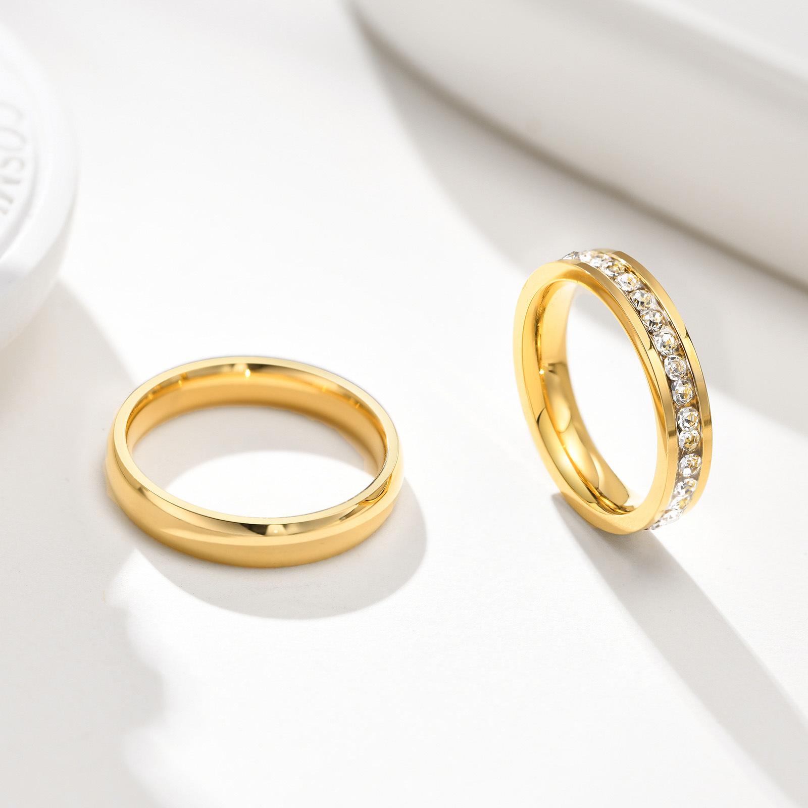Anillos de Pareja de Acero de Titanio, un Par de Anillos Dorados de 4 mm de Boca Cerrada, Regalo Simple de Nicho para el Día de San Valentín R-050