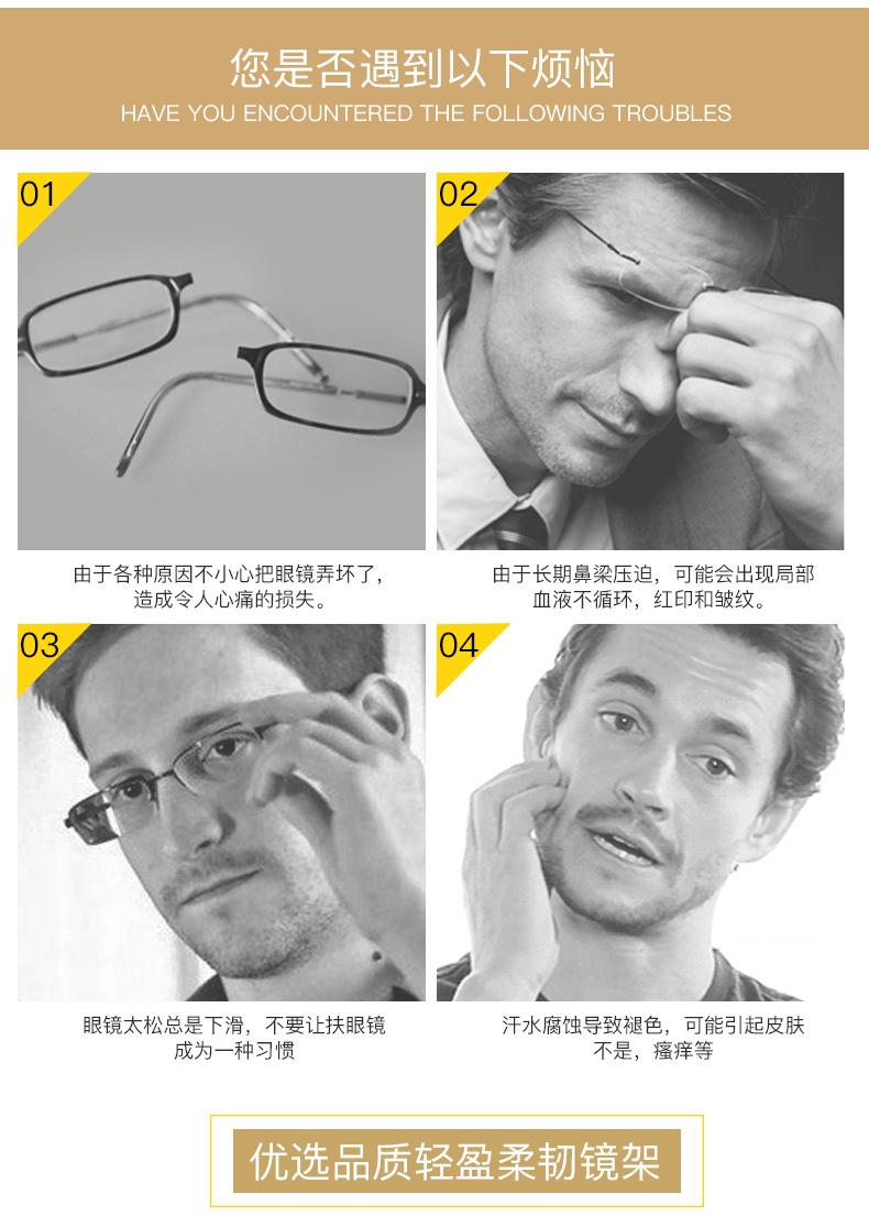 1. Ponerse y quitarse las gafas con una sola mano alterará el equilibrio entre la montura y la derecha, provocando deformaciones. Se recomienda sujetar las patillas con ambas manos y quitárselas en direcciones paralelas a ambos lados de la mejilla.