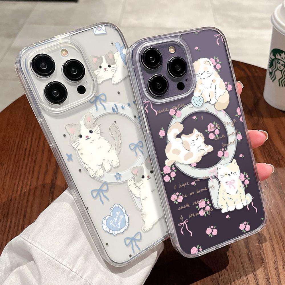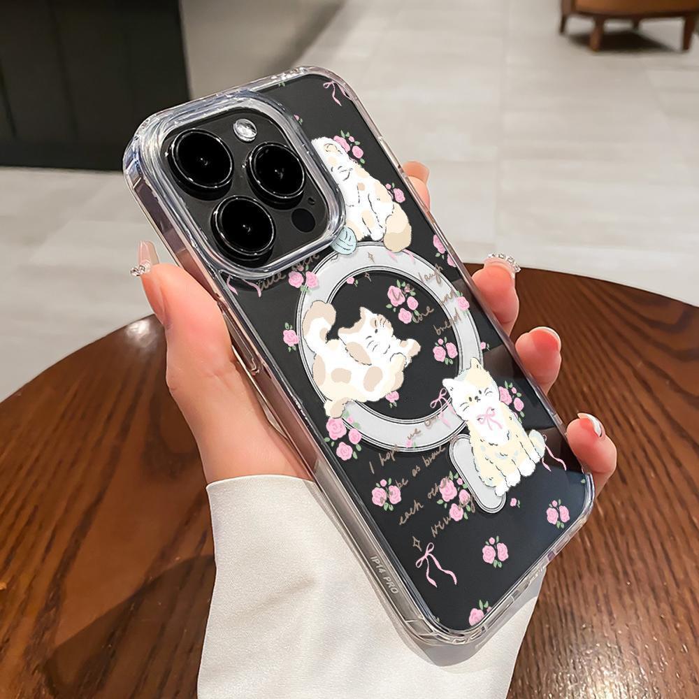 Large hole magnetic attraction, transparent-L41 pink gray white cat