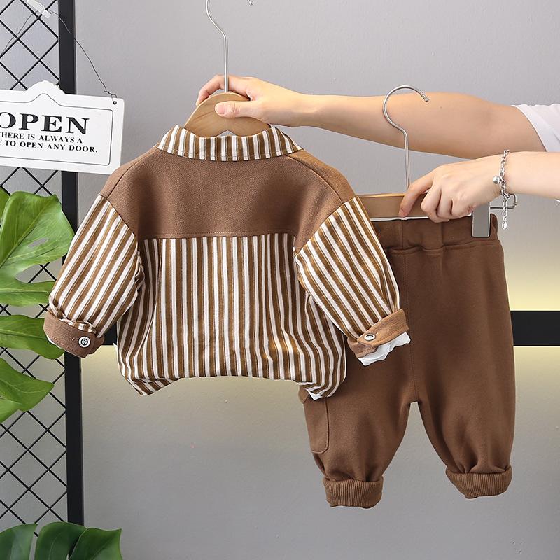 Compra Otoño 2024 Ropa Infantil Niño Bebé Traje de Camisa de Solapa Vertical Dibujos Animados Infantil Manga Larga Conjunto de Tres Piezas Traje Coreano al por mayor en Joom.pro