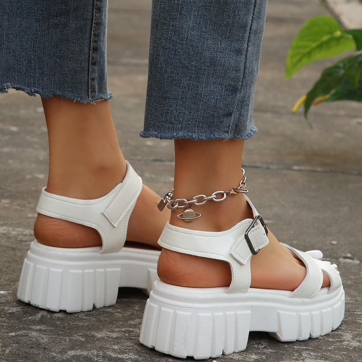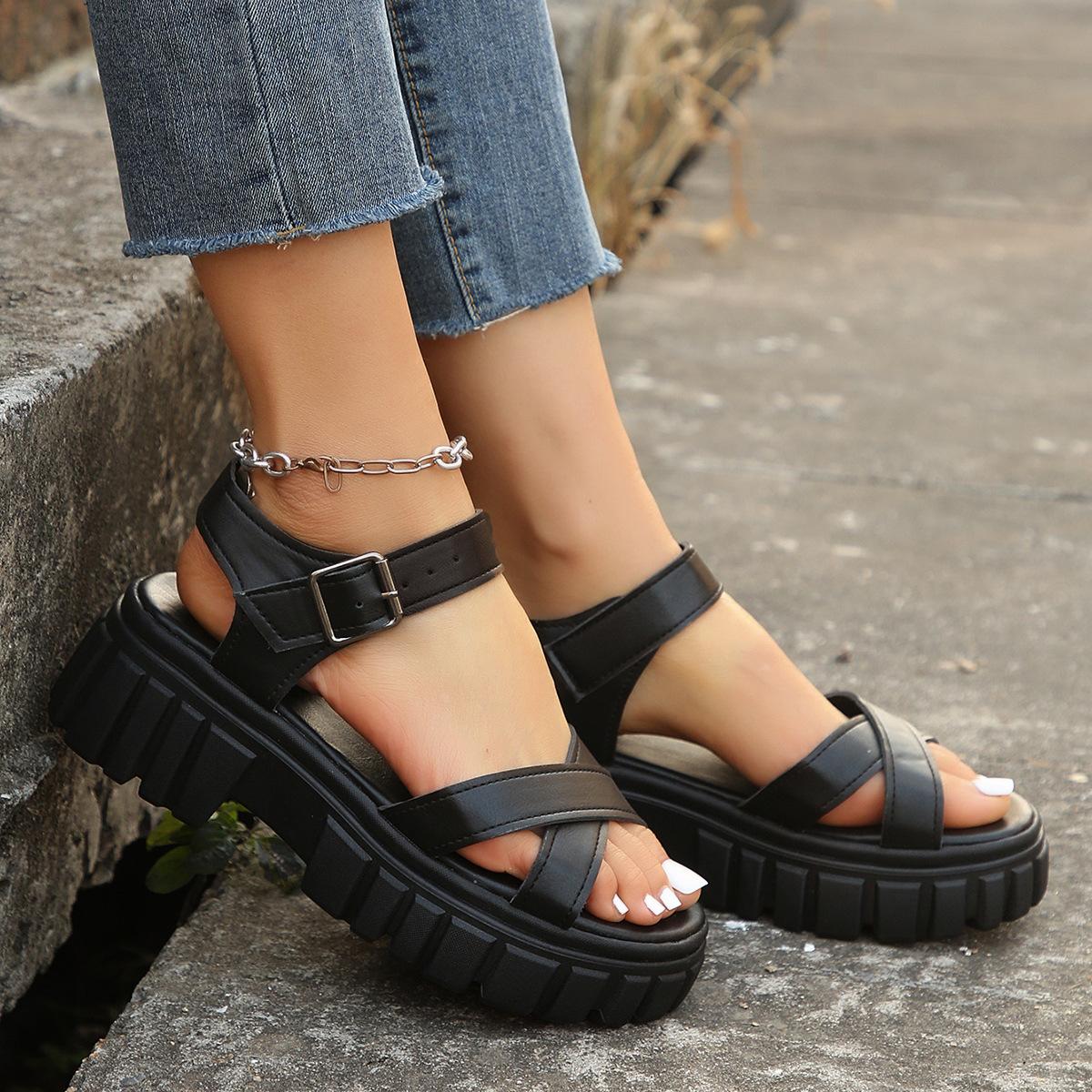 Verano 2024 nuevo comercio exterior talla grande sandalias romanas de plataforma con tiras cruzadas para mujer cómodas transpirables decoración hebilla de cinturón