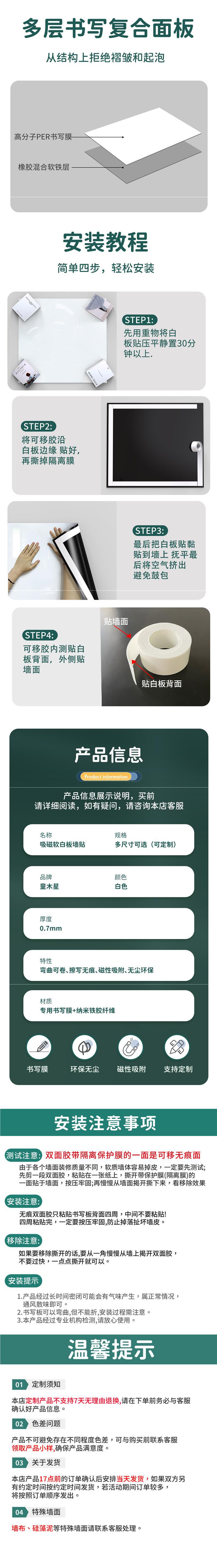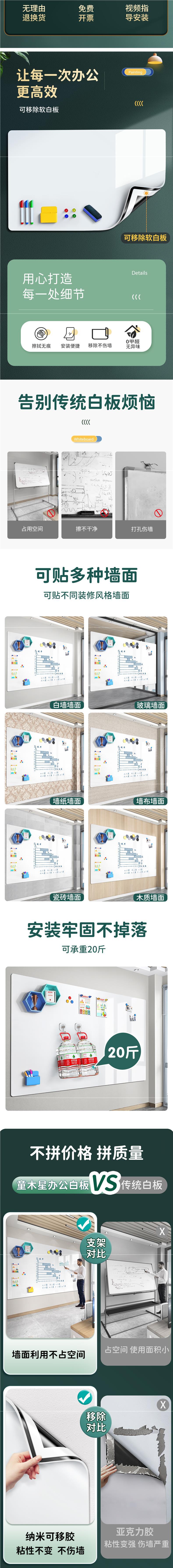 Adhesivo de pared de pizarra blanca extraíble magnético para oficina en la pared Pizarra de dibujo para enseñanza infantil que no daña la pared Magnético para el hogar Negro