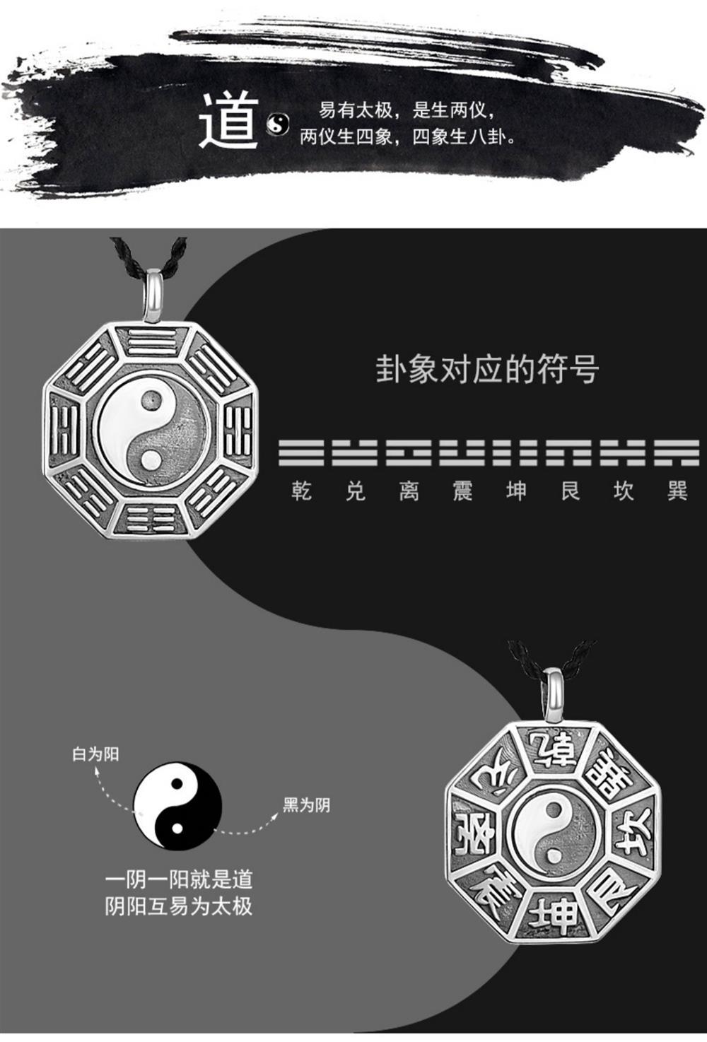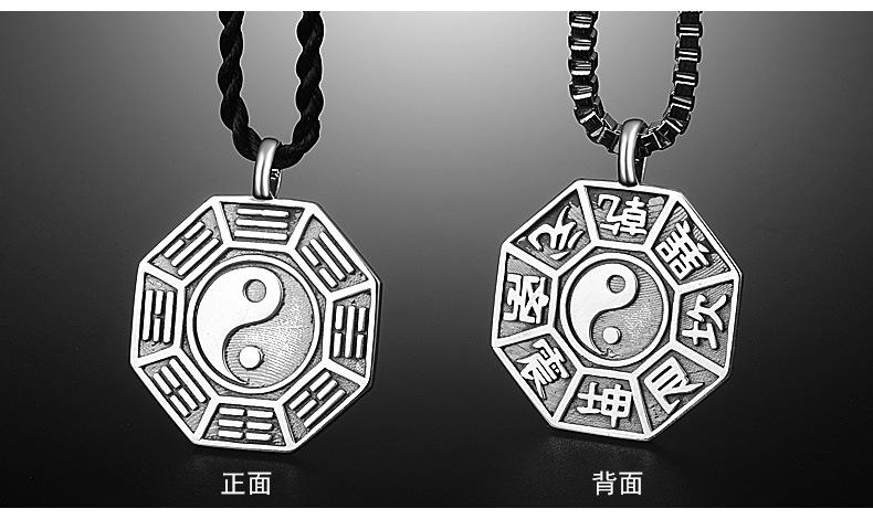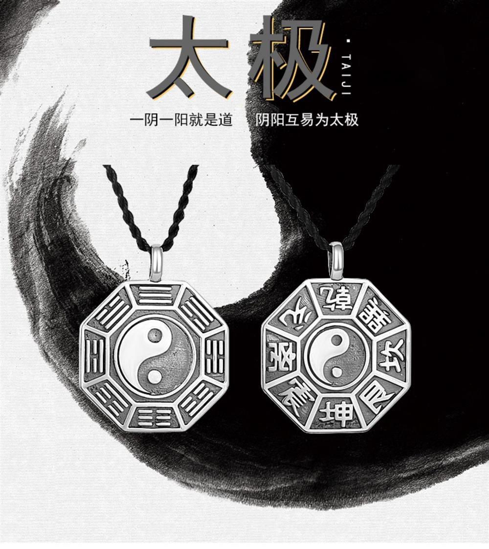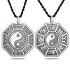 Colgante de espejo Bagua de nueve palacios con diseño de pez Yin Yang de plata tailandesa vintage de Chiba, amuleto con figura de Taiji, collar para hombre y mujer, joyería