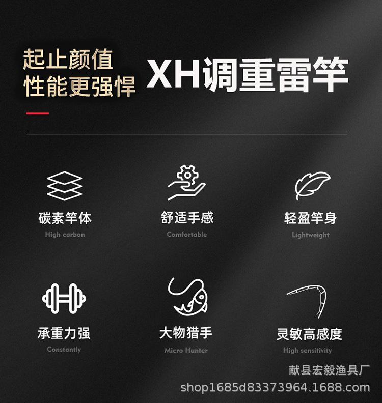 Caña de pescar XXH Thunderbolt Carbon Heavy Thunder Black Anchor de 2,7 m y 3 m con mango de agarre firme, caña de pescar de largo impacto para pesca en el mar Luya