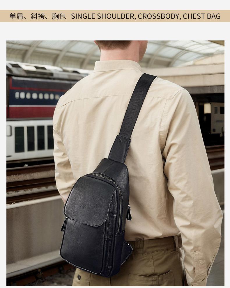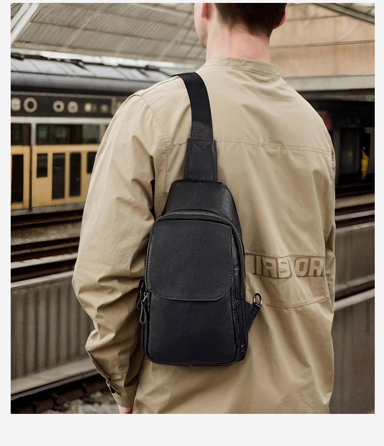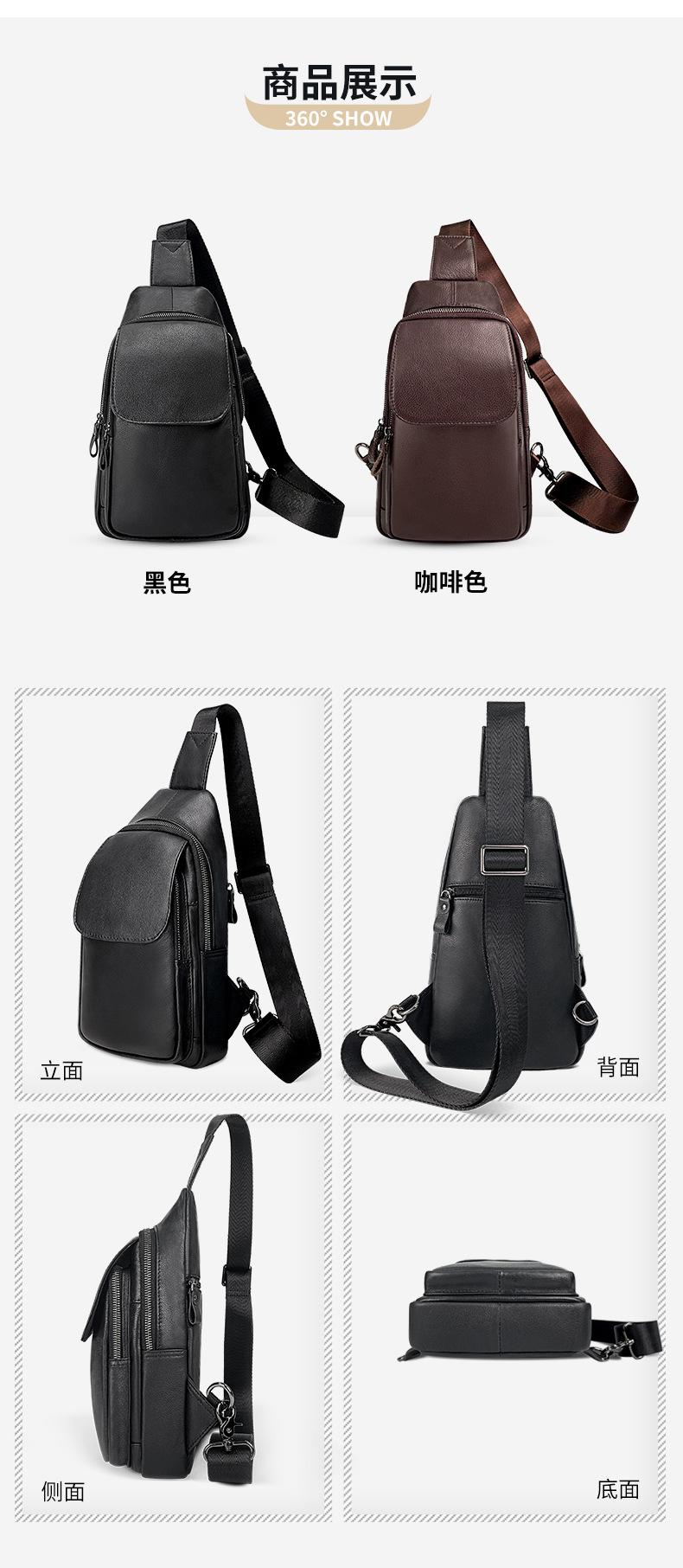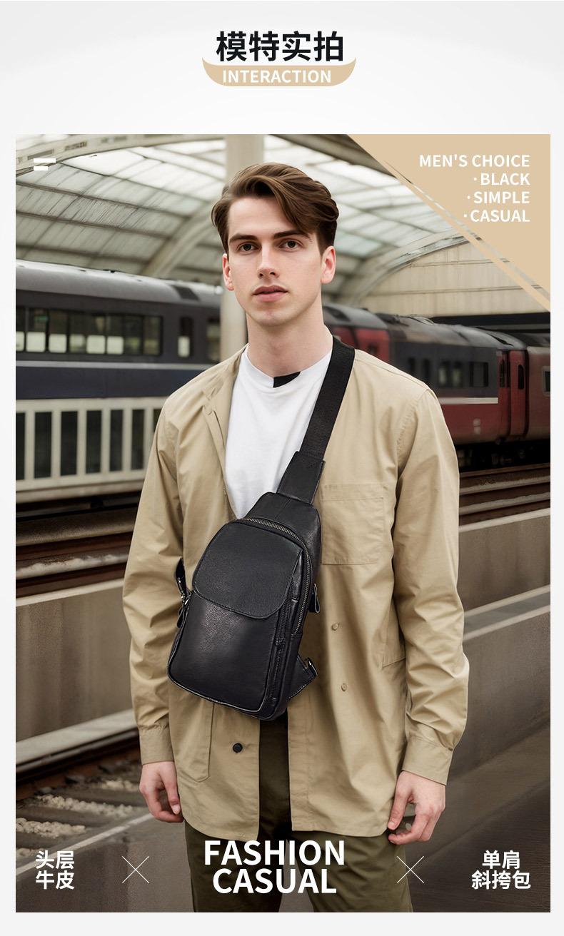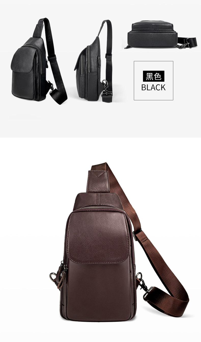 Jiameda Bolso de Pecho de Cuero Genuino para Hombre Bolso Mensajero de Alta Gama Bolso Cruzado Casual para Exterior Bolso de Pecho de Cuero Vacuno de Capa Superior